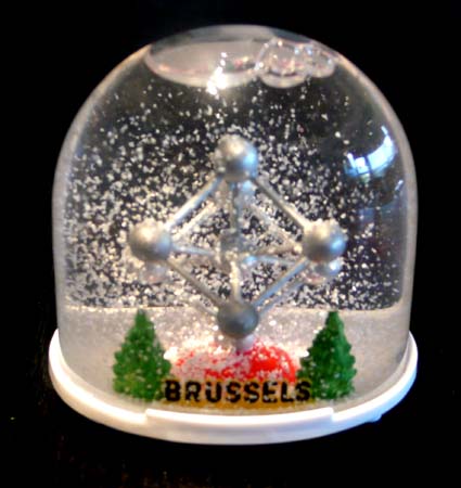 bruxelles atomium avec neige – boule « en action » rapportée d’un long week-end en 2011. 35 ans que j’en rêvais (du voyage, pas de la boule). et l’atomium, un rêve de gosse ;O). format ovale standard: hauteur 6,56 cm (avec pieds), socle 7,1×5,3 cm.