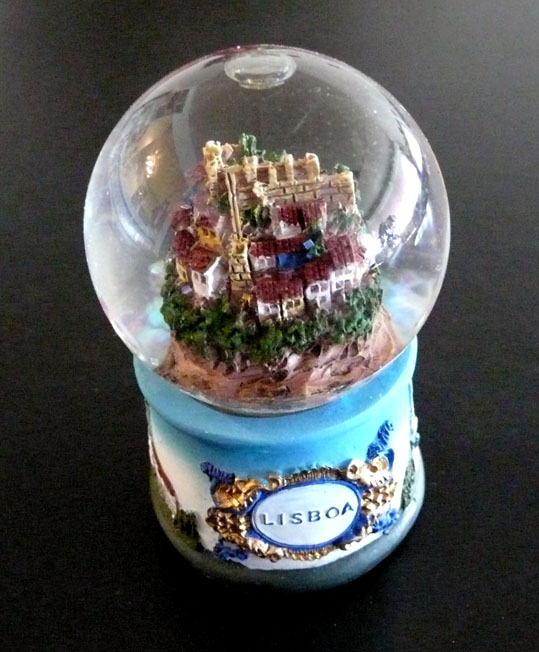 lisbonne – rapportée d’un long week-end en mars 2007. le motif est le château são jorge… sphère, petit format: hauteur 6,7 cm, diamètre du socle 4,1 cm