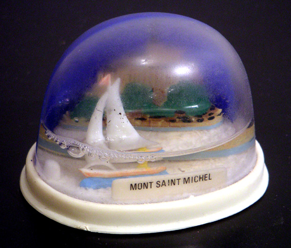mont saint-michel – j’ai une tendresse particulière pour celle-ci car ce doit être la première que j’aie jamais acheté, en 1994. impossible de remplacer l’eau car le bouchon est coincé. et la marée qui baisse :)… j’ai un souvenir précis du mont: on avait réussi à entrer dans l’abbatiale avec bob (mon chien) dans un sac à dos, là où il était déjà rigoureusement interdit d’entrer en short (alors vous imaginez avec un chien!)… format ovale standard: hauteur 5,5 cm, socle 6,8×5,2 cm.
