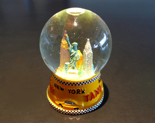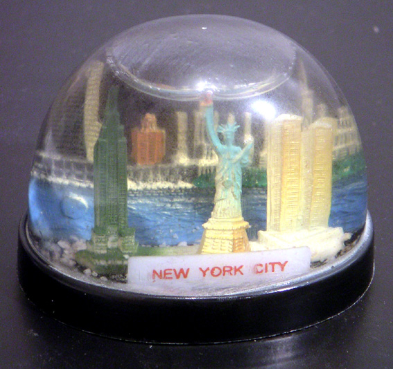 new york gratte-ciel statue – troisième boule sur le thème, rapportée en 2012. celle-ci est un peu différente avec ses couleurs vives, même si le sujet est presque toujours le même. sphère, petit format: hauteur 6,2 cm, socle 4 cm.