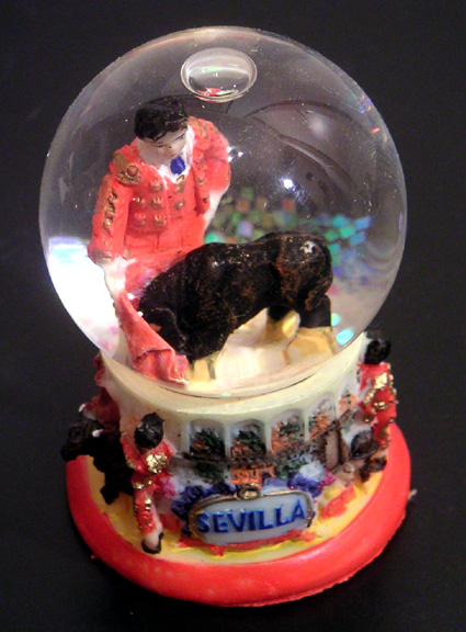 séville – offerte. je ne suis pas fan du sujet. mais au moins il est très couleur locale… sphère, petit format: hauteur 6,9 cm, diamètre du socle 4,4 cm.