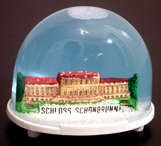 vienne château de schönbrunn – achetée en avril 2003. c’est un peu le château de versailles de vienne. le sujet que l’on voit ici n’est que l’entrée du lieu. derrière se trouve un parc gigantesque à flanc de colline où se trouvent une serre magnifique, des fontaines et, en haut, un pavillon où l’on peut se restaurer et d’où l’on a une vue imprenable sur la ville… format ovale standard: hauteur 5,5 cm, socle 6,8×5,2 cm.