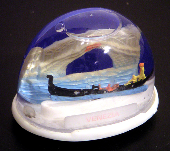 venise – achetée en mars 2000. l’inscription commence à s’effacer. la gondole se balance et peut avancer d’avant en arrière. format ovale standard: hauteur 5,5 cm, socle 6,8×5,2 cm.