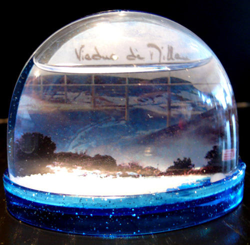 viaduc de millau – encore une rapportée du picor’trip d’août 2008. il a fallu un détour de près de 300 km et une quasi-panne d’essence pour aller le voir, ce fameux viaduc le plus grand d’europe. mais ça valait le coup. j’en ai bien sûr profité pour acheter cette demi-boule équipée d’un aimant sur la face arrière (eh oui, c’est un magnet). format demi-ovale standard: hauteur 5,1 cm, socle 2,7 cm.