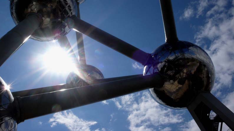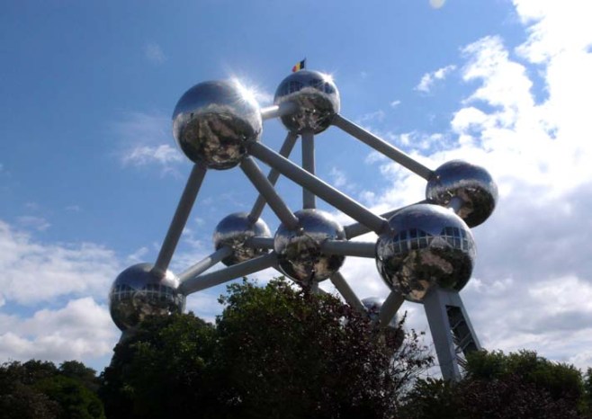 l’atomium est à bruxelles ce que la tour eiffel est à paris: un symbole. en l’occurrence un symbole de progrès et de la foi en l’énergie atomique qui, à la fin des années 1950, était quasi aveugle. construit à l’occasion de l’exposition universelle de 1958, l’atomium représente la maille conventionnelle du cristal de fer agrandie 165 milliards de fois.