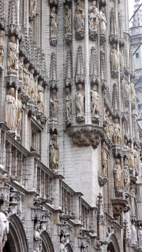 inscrite au patrimoine mondial de l’unesco, elle est considérée comme l’une des plus belles places du monde. entourée de façades italo-ibéro-flamandes somptueusement (lourdement diront certains) chargées de dorures et d’ornements baroques, sauf pour l’hôtel de ville qui est gothique, la grand-place (het groote markt) est incontestablement le centre historique de la ville et le point névralgique de ce qu’il est convenu d’appeler l’îlot sacré, d’où rayonnent quantité de ruelles typiques. le dernier soir, on a même eu droit à un spectacle de son et lumière-surprise (pour nous) projeté sur la façade de l’hôtel-de-ville. marché aux fleurs tous les dimanches matin (quand le temps le permet) et très bons petits-déjeuners (€ 9.-) servis par des garçons sympa tout prêts à vous raconter leur ville au restaurant la brouette…