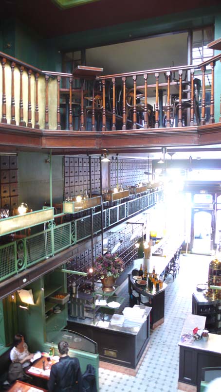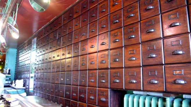 restaurant fameux (dans tous les sens du terme) situé 45, rue du page, au coeur d’ixelles, le quartier art nouveau de bruxelles. ancienne quincaillerie à l’architecture torturée (j’adore), les murs de l’endroit sont couverts de centaines de petits tiroirs en bois.