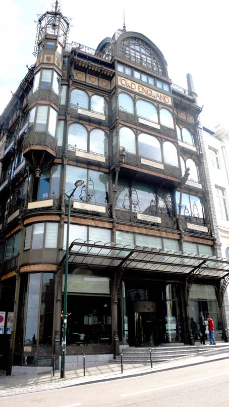 réalisation de paul saintenoy (1899), élève de victor horta, le bâtiment de l’ancien magasin old england, sis sur le mont des arts, est une oeuvre dont la modernité tient à l’utilisation du verre et du métal permettant de dégager l’espace et d’y faire entrer un maximum de lumière. il abrite depuis 2000 le musée des instruments de musique de bruxelles.