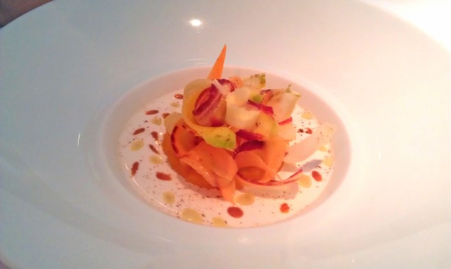 quel plus bel endroit, pour passer le cap des 50 ans, que la maison pic, à valence? un lieu global dédié à l’art de vivre, le bien-manger et le bien-dormir, chargé d’histoire(s) et de tradition, mené par un petit bout de femme charmante, modeste, et tellement talentueuse. nous avons séjourné dans l’une des deux mini-suites situées au-dessus du restaurant. le restaurant jouxte le 7 de pic, bistrot baptisé ainsi en référence à la nationale 7 qui passe devant. un peu plus loin, sur le même trottoir, la boutique, la cave à vins et l’école de cuisine. le repas fut à nul autre pareil, assorti d’un service absolument parfait. un week-end d’exception, à la fois mémorable et délicieux, même si les photos sont très loin de rendre justice à la beauté, la créativité et la saveur de la cuisine de dame pic…