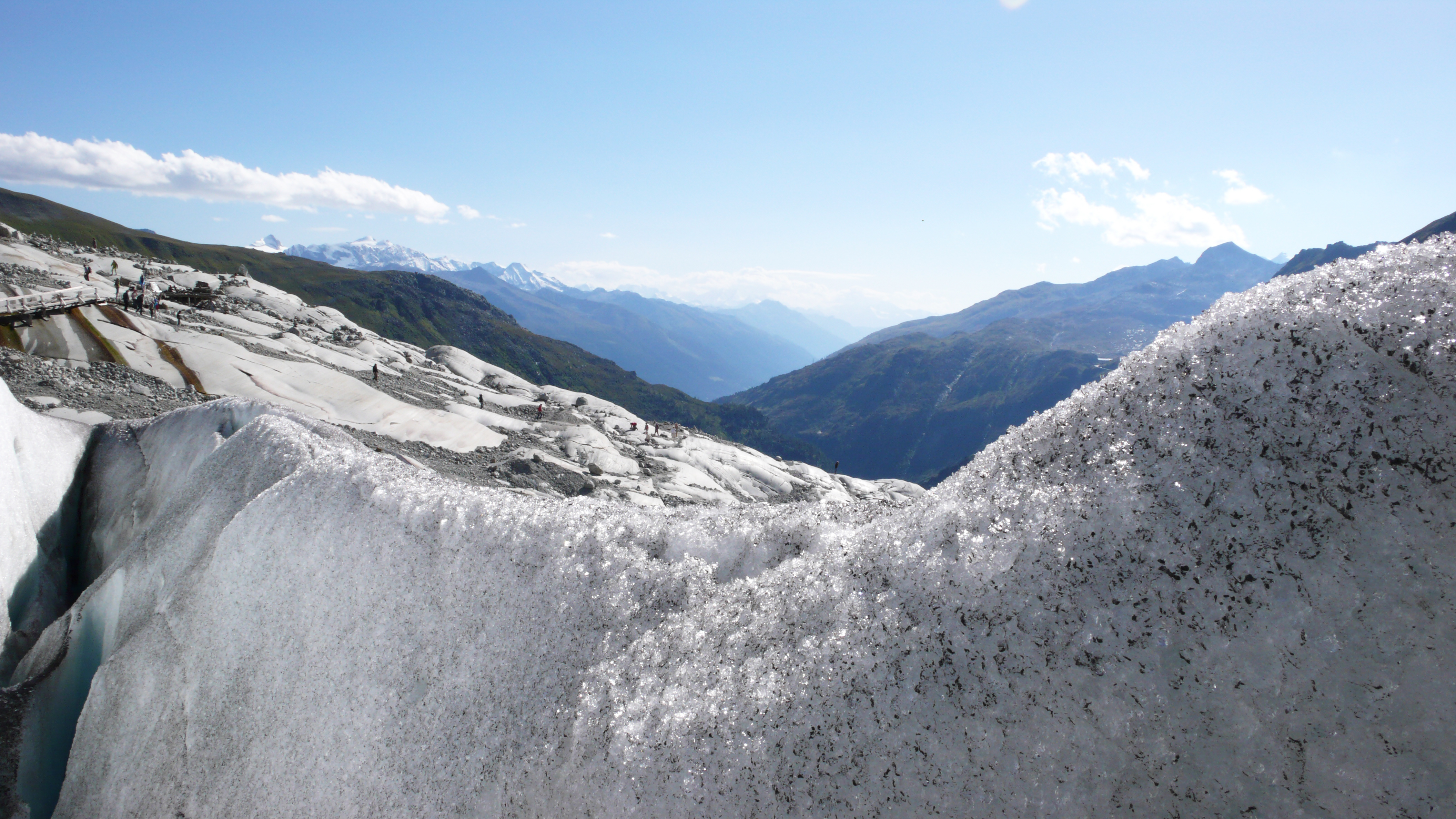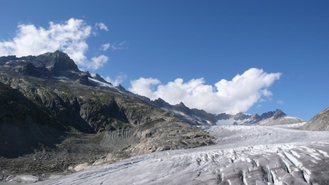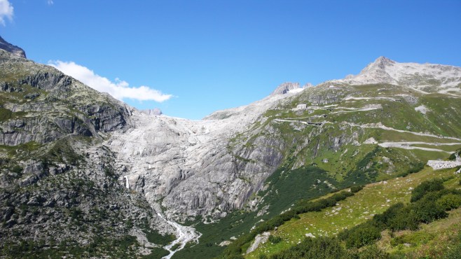 glacier du rhône. impressionnant, comme tous les glaciers. triste, quand on sait qu’il fond à vitesse grand v. comme tous les glaciers. c’est là que naît le rhône…