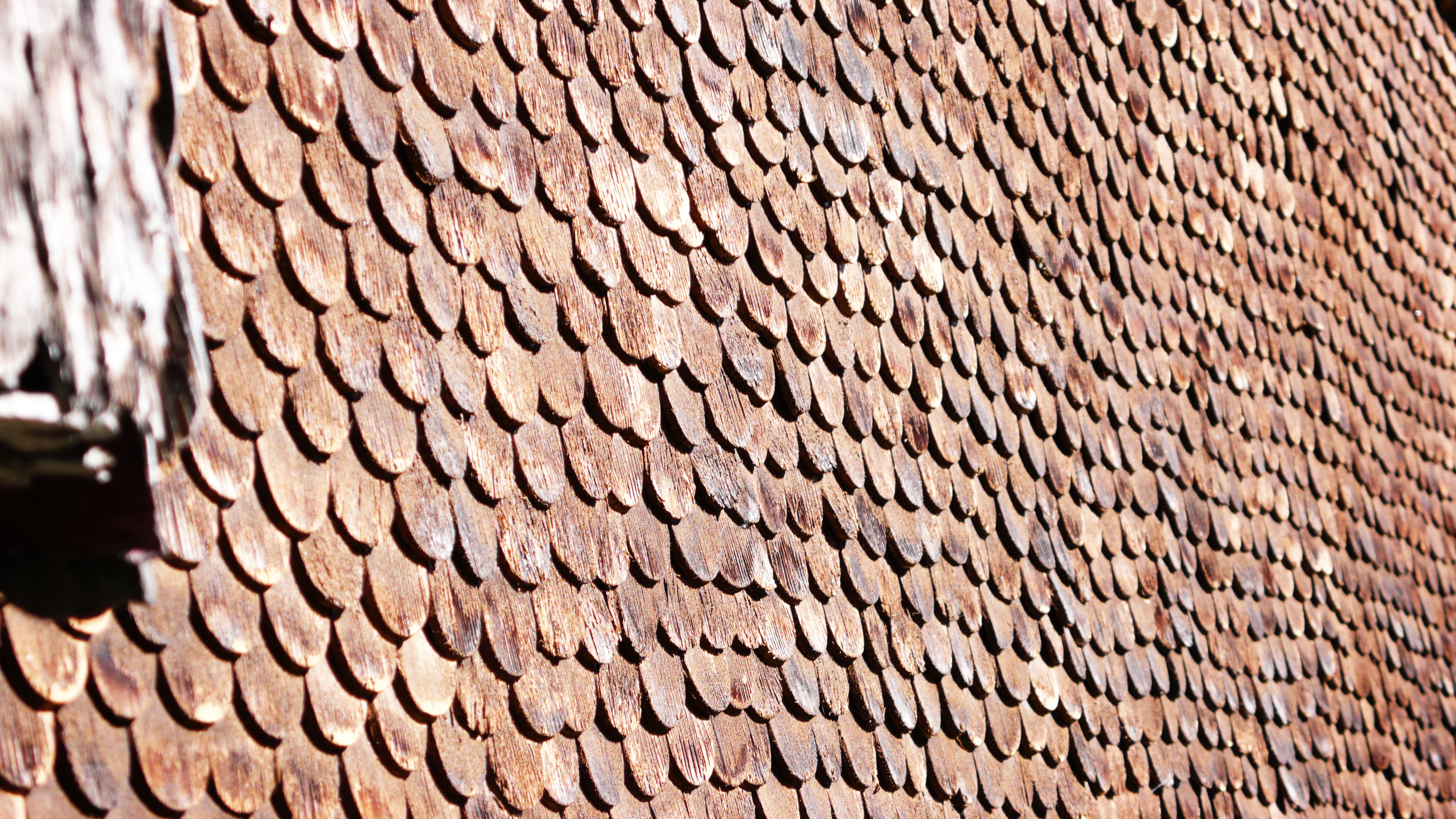très typiques, ces petites tuiles en bois recouvrent les façades de pas mal de maisons, du fin fond du valais aux grisons, en passant par uri. on imagine sans peine la quantité hallucinante de travail…