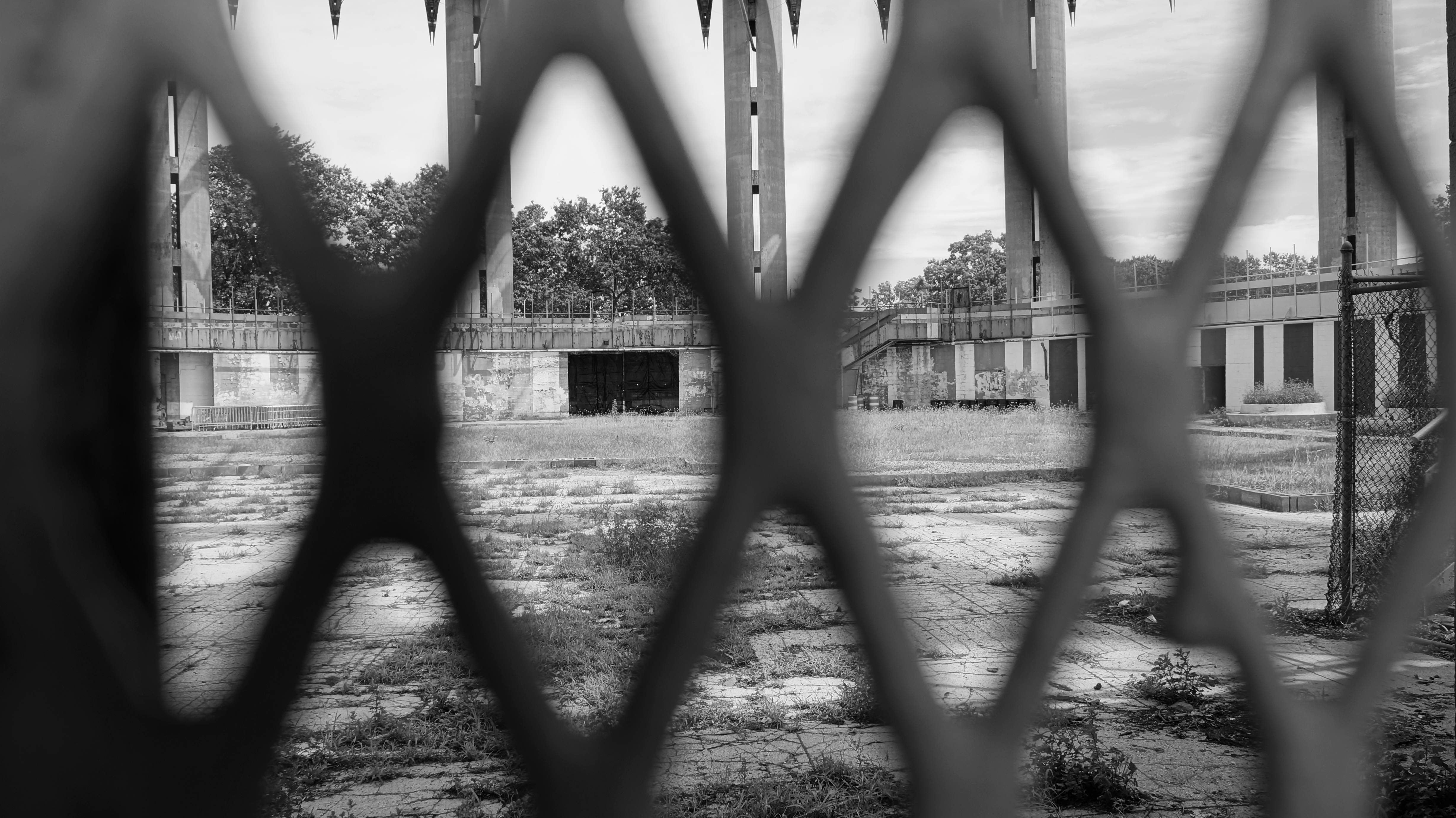 le sol dégradé du pavillon de la ville de new york pour l’expo universelle de 1964 qui représentait à l’origine la carte routière de l’état de new york…