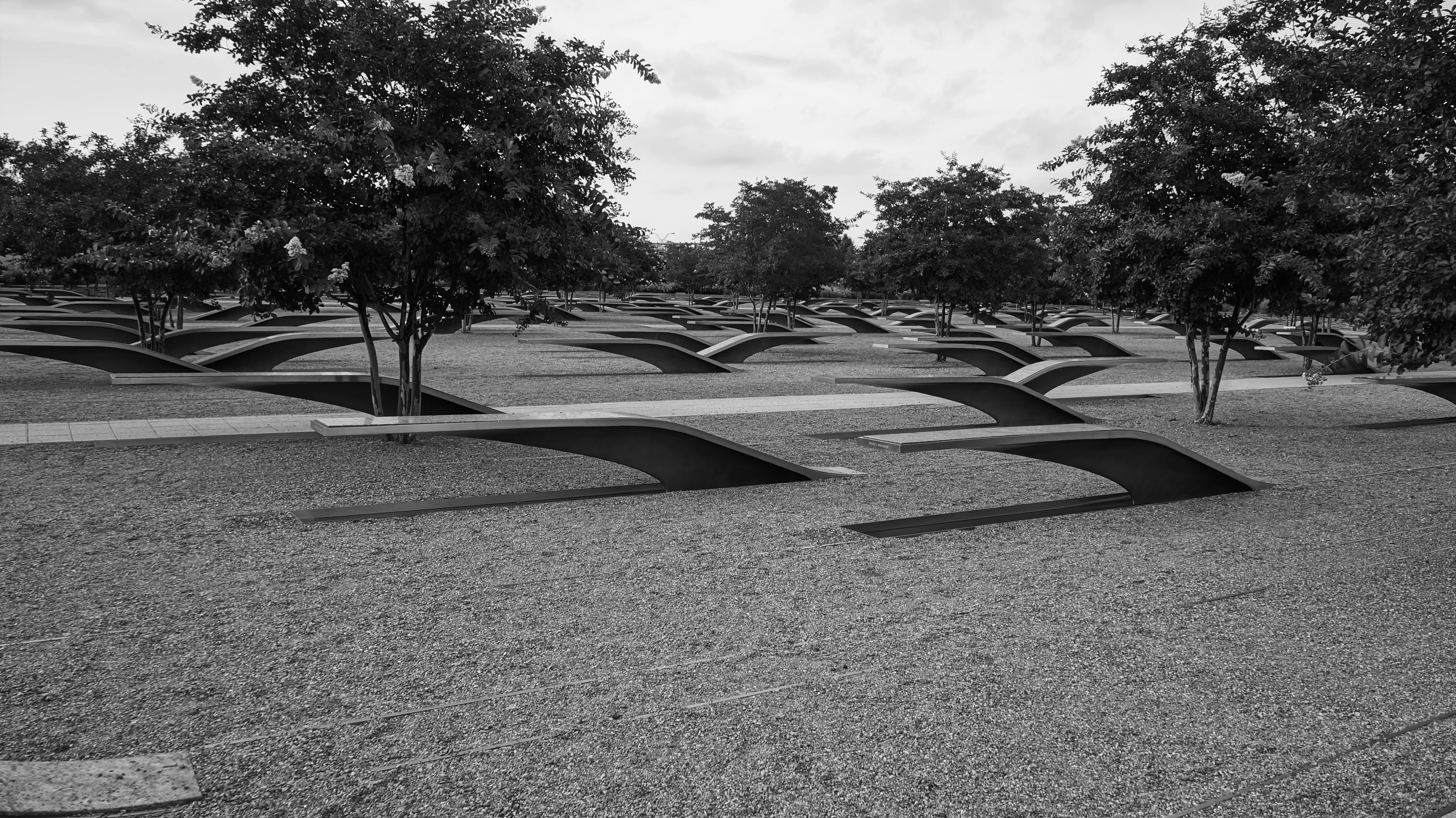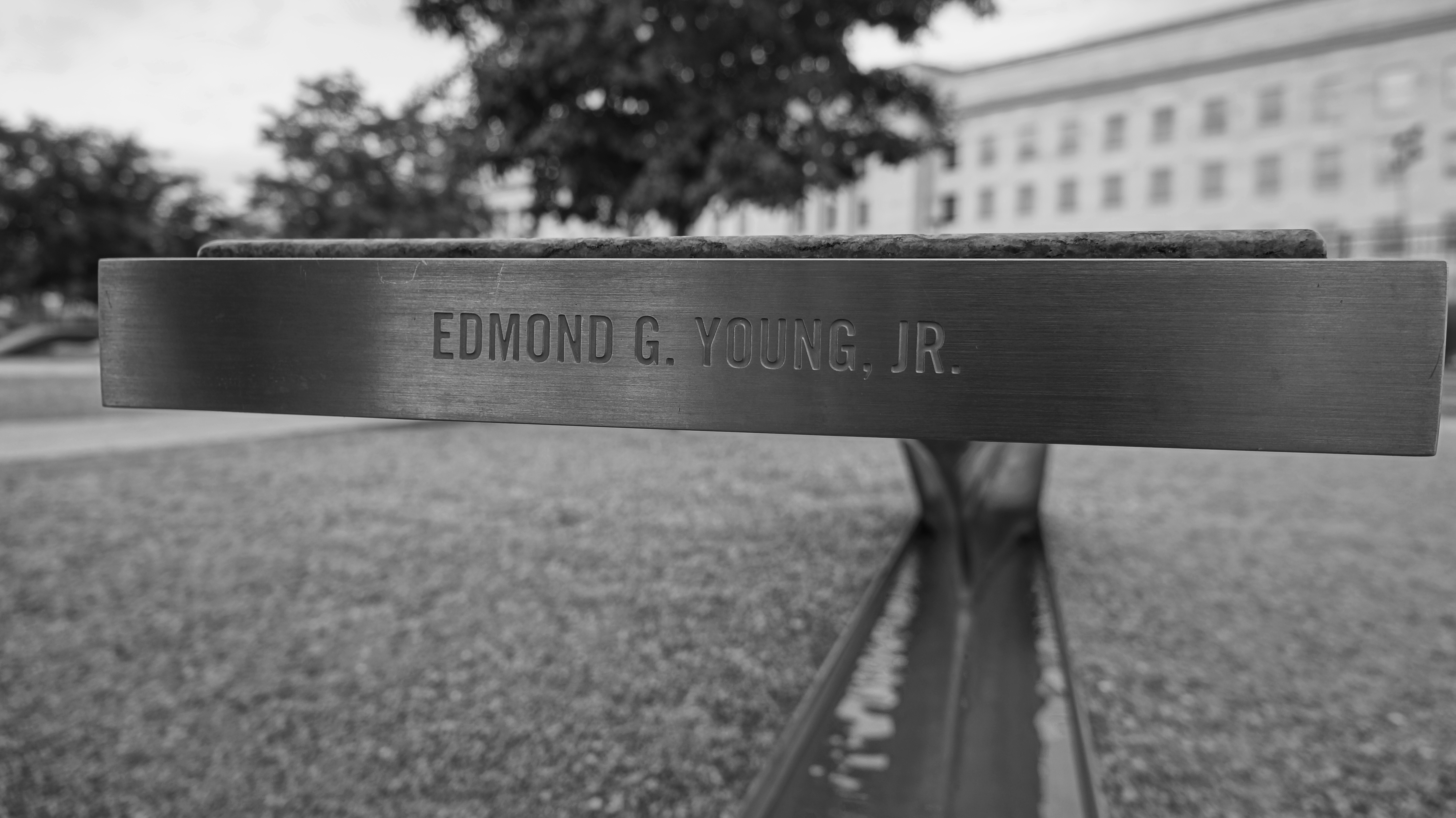 pentagone – le mémorial des victimes du 11 septembre. 184 bancs, un par victime, dont le nom est gravé sur la tranche…