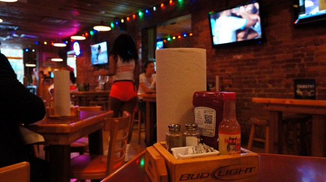 un restaurant hooters, avec les célèbres serveuses canon en short orange et poitrines avenantes. honnêtement? à part deux ou trois filles qui faisaient honneur à la réputation de cette chaîne, je n’ai pas été sidéré par les physiques desdites demoiselles…