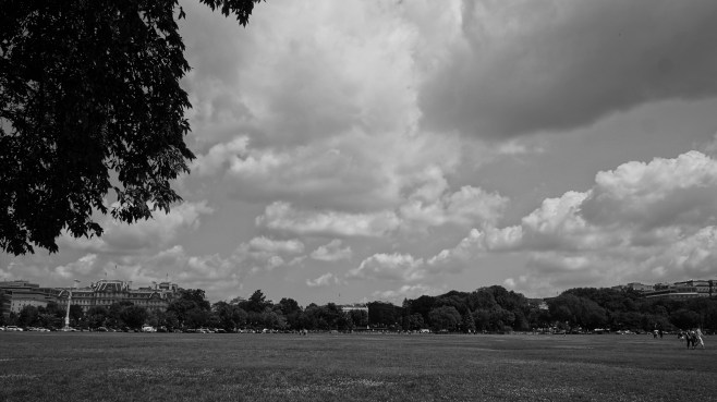 vu depuis l’east st., très loin des grilles, la pelouse de la maison-blanche avec, au premier plan, le president’s park, puis la white house south lawn, et enfin, devant le bâtiment, le kennedy garden.