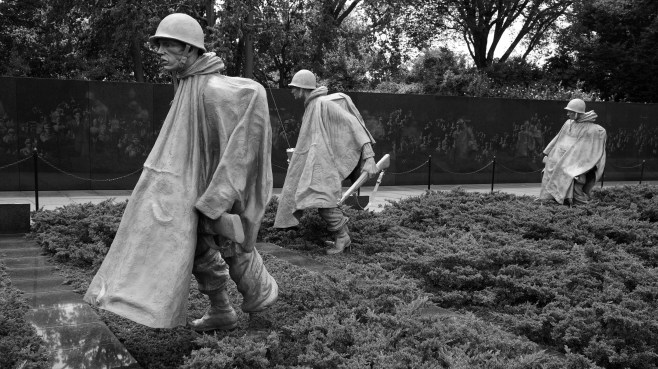 le korea war veterans memorial: le mur représentant les soldats comme s’ils étaient des esprits. impressionnant.