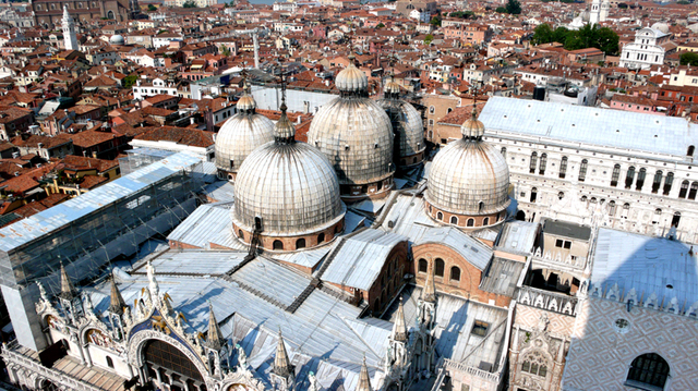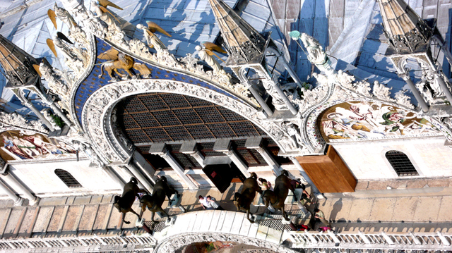 basilica di san marco. ces quatre chevaux de saint-marc sont des copies des bronzes dorés originaux conservés dans la basilique.
