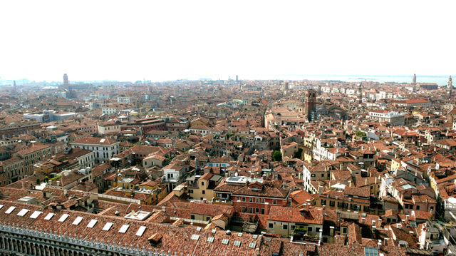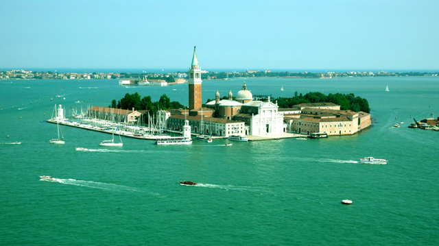 du sommet du campanile, on peut voir l’extrémité est de l’île de la giudecca, baptisée initialement « spinalunga », en raison de sa forme et où tout n’est, paraît-il, que calme et volupté. son nom vient, non pas de « giudei » (des juifs qui y vécurent au xiiie siècle) comme on l’a d’abord cru, mais des « giudicati », ces nobles qui avaient entravé le cours de la justice et qui y étaient exilés au ixe siècle. un hôtel de luxe côtoie les ruines d’un moulin construit par un suisse qui fut assassiné par l’un de ses employés en 1910.