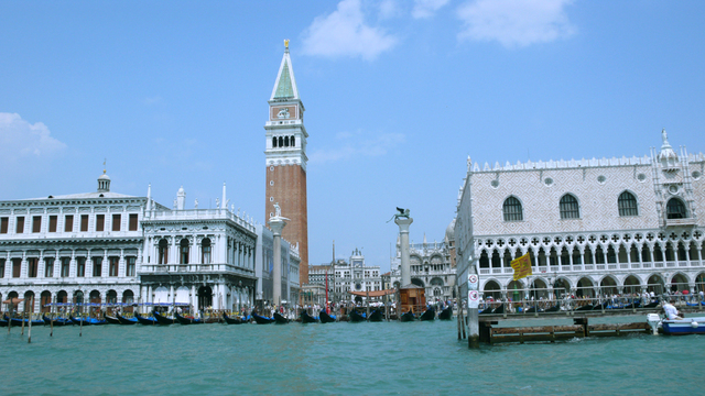 les colonnes de saint-théodore et de saint-marc trônent de manière imposante à l’entrée de la piazzetta di san marco, flanquée à droite du palais des doges, juste avant l’arrivée spectaculaire sur la piazza di san marco…