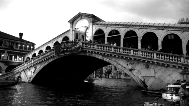 pont légendaire, repère familier, au moins aussi célèbre que le golden gate ou le pont de brooklyn, le rialto marque le centre géographique de venise. pas aussi beau néanmoins (à mon humble avis) que le ponte vecchio de florence, son nom provient de « rivo alto » (rive haute), car l’endroit a été l’une des premières îles de la lagune à avoir été colonisées…