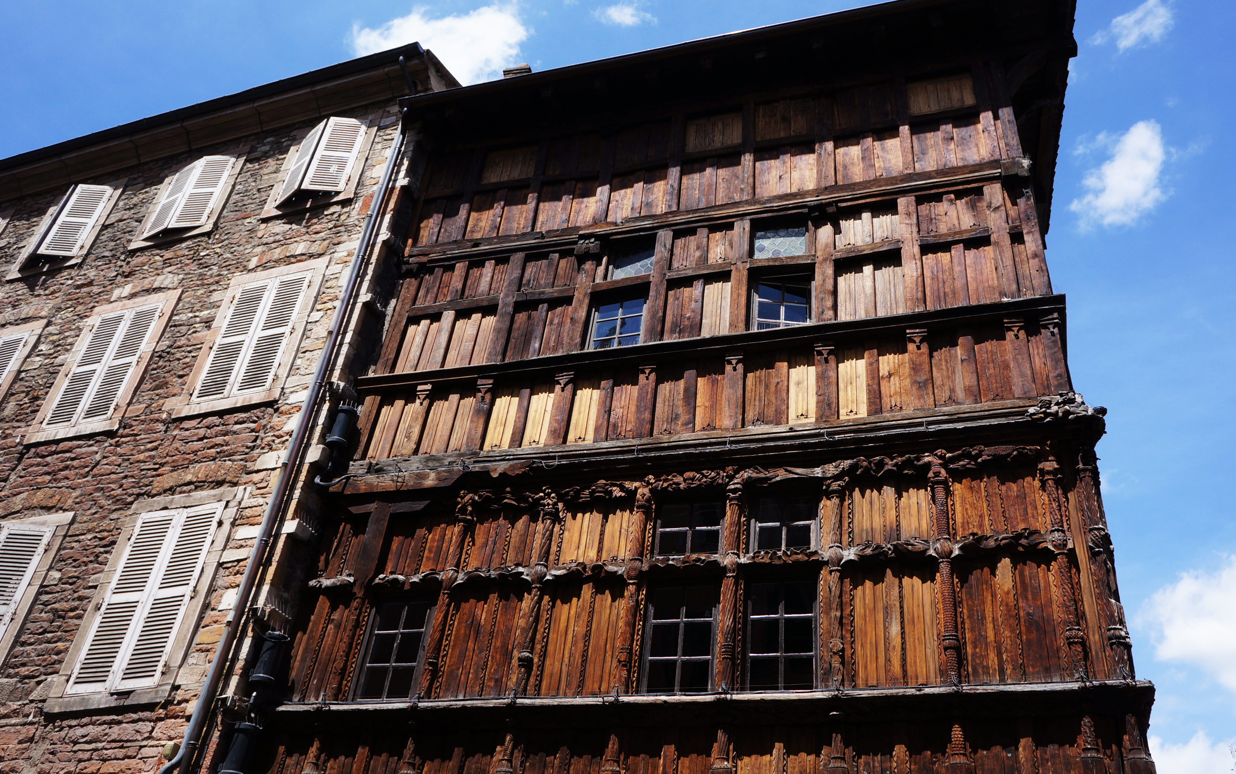 mâcon, la maison de bois, la plus ancienne de la ville, avec sa façade du 12e siècle. l’endroit est en fait un restaurant design…