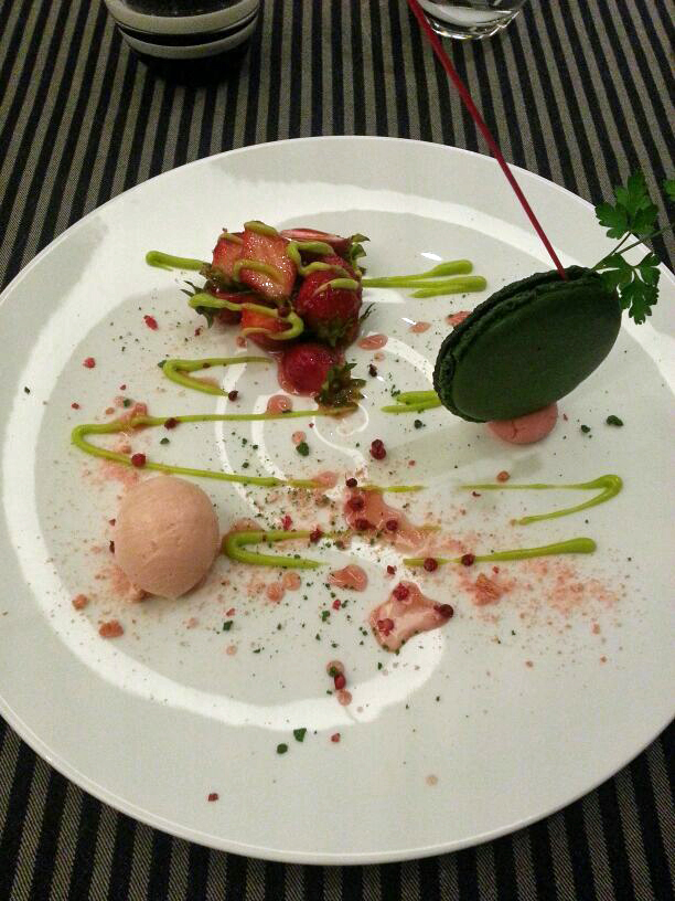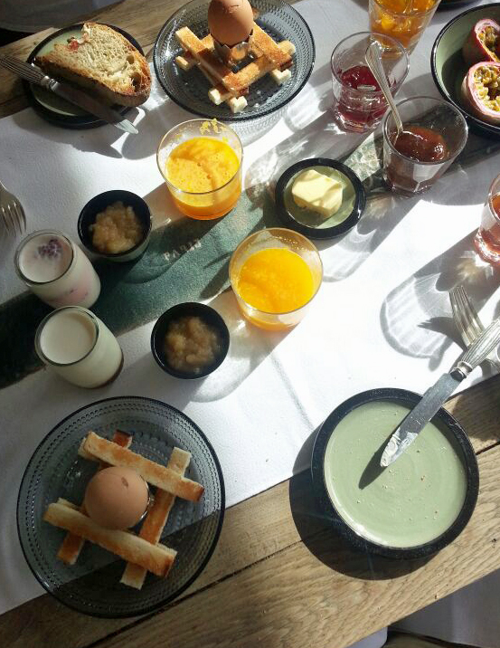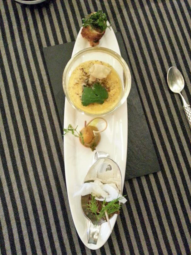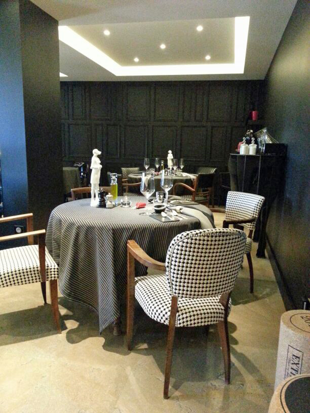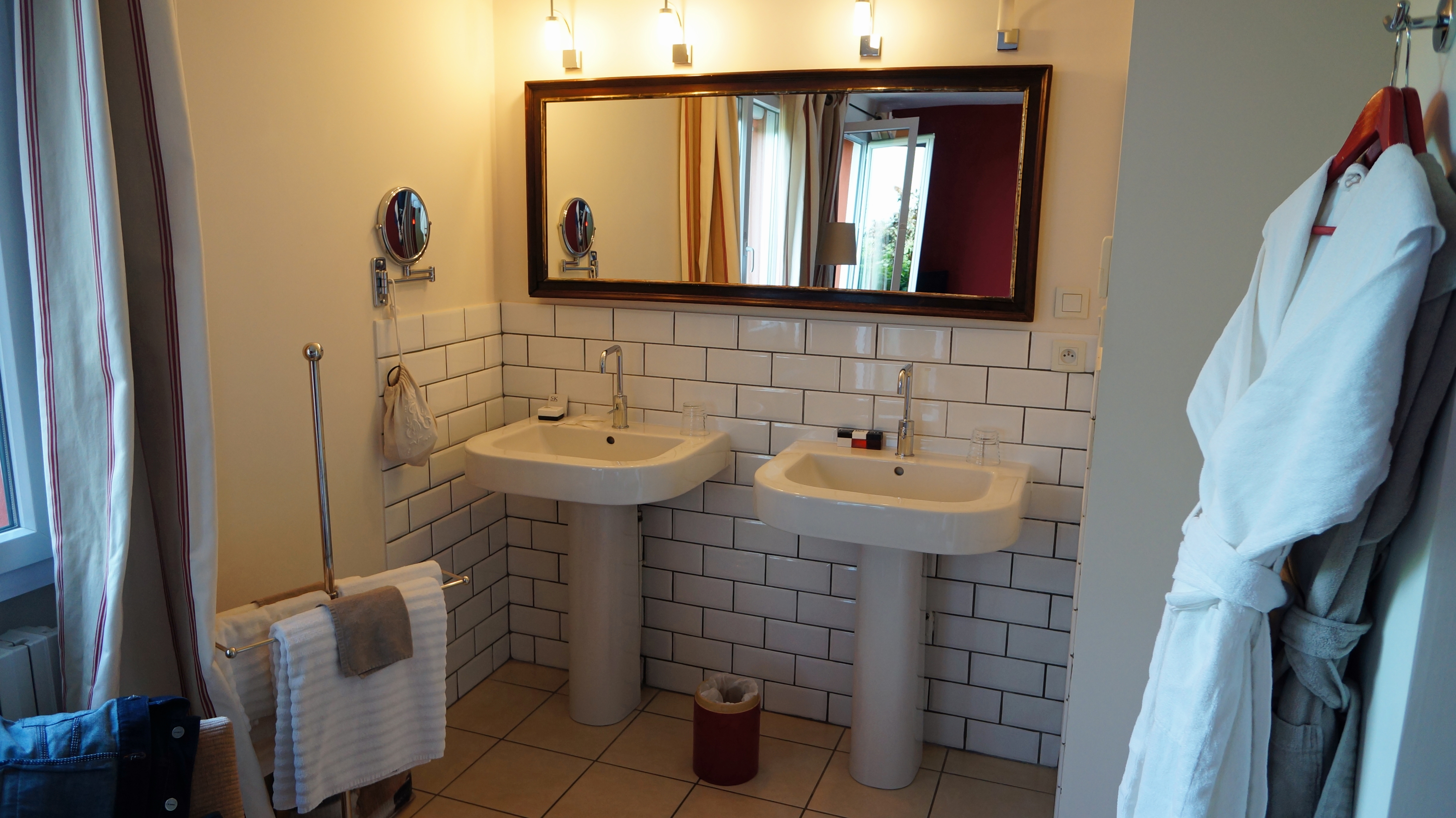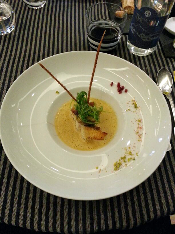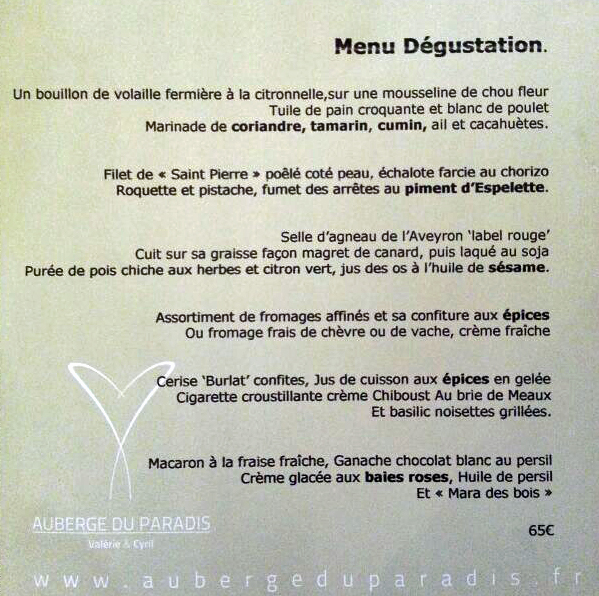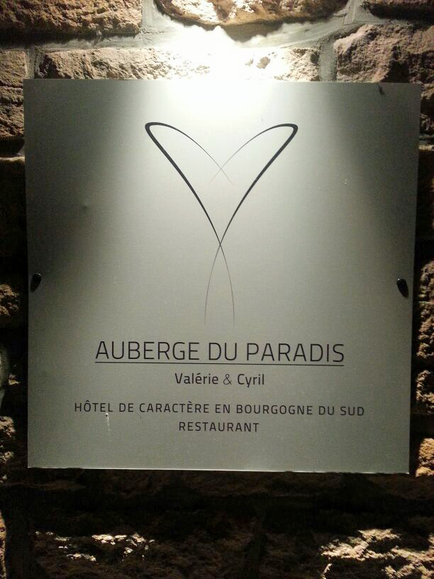 mais notre séjour n’a duré que trois petites heures car le but de cette escapade de semaine était ailleurs: un endroit dont je ne savais rien et vers lequel je me laissai guider de bonne grâce. et pour cause, c’était mon cadeau d’anniversaire… :O) direction sud-ouest de mâcon, donc, à une petite trentaine de minutes de là, vers un patelin au nom pas très glamour – le plâtre-durand (j’ai essayé d’en savoir plus sur l’origine du nom, personne n’a pu me renseigner), où se cache pourtant une destination de rêve: l’auberge du paradis (que les guides situent aussi à saint-amour bellevue). un lieu à la fois super-design, super-cosy et super-calme. l’auberge du paradis la bien nommée, donc, même si « paradis » n’a en l’occurrence rien à voir ni avec l’eden ni avec adam et eve. quoique. ce « paradis » dont semblent affublés tous les gites locaux (je le découvrirai un peu plus tard) n’est autre que le nom donné au premier pressurage du raisin lors de la fabrication du vin, ce nectar divin si l’on en croit les amateurs. pas si éloigné que ça du fruit défendu, finalement. tenu par cyril et valérie laugier, lui en cuisine, elle… partout ailleurs, l’endroit s’est vu décerner, qui plus est, une étoile par le guide michelin en début d’année (2014, donc) pour sa cuisine gastronomique. le séjour s’annonçait des plus réjouissants.