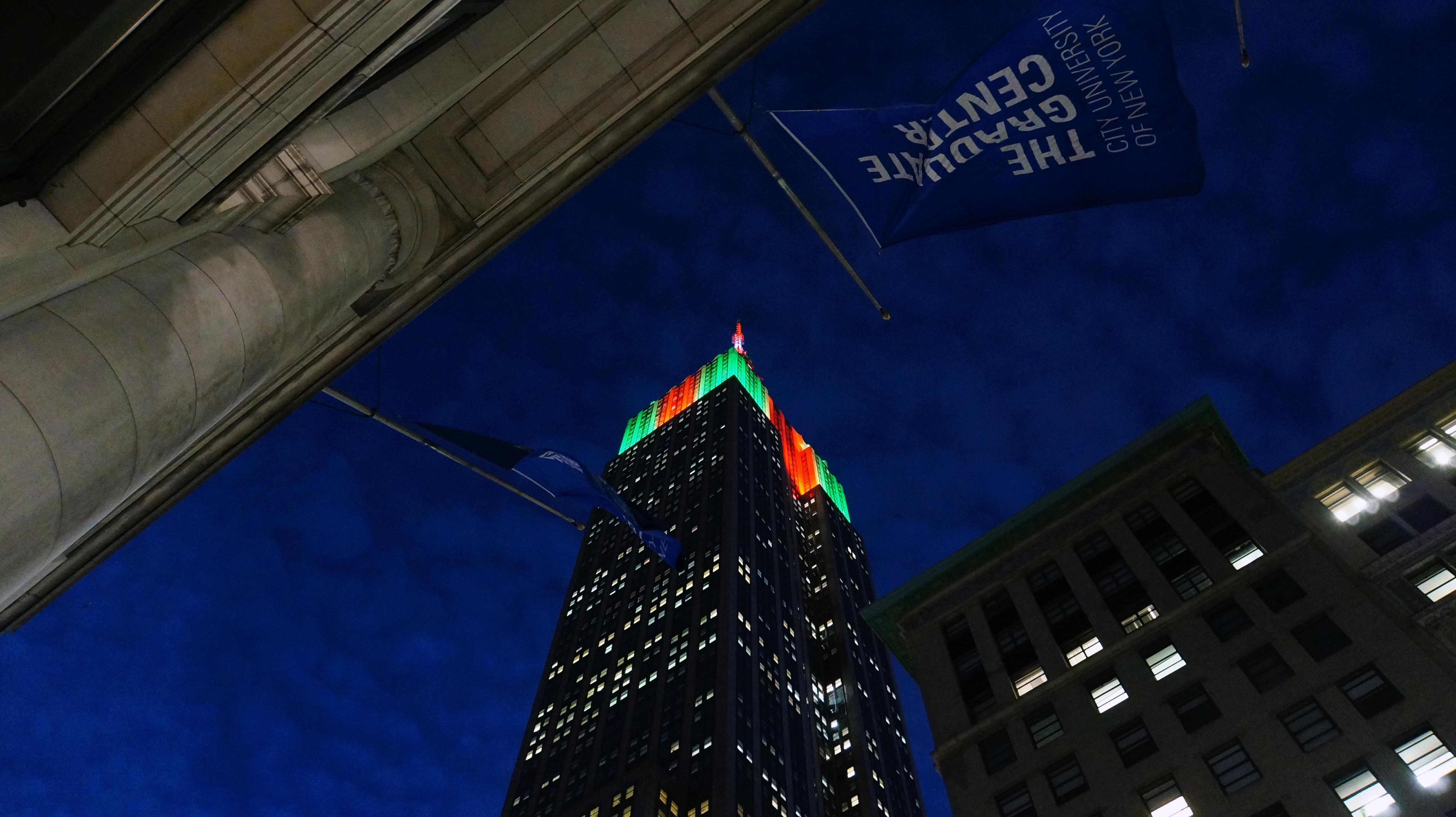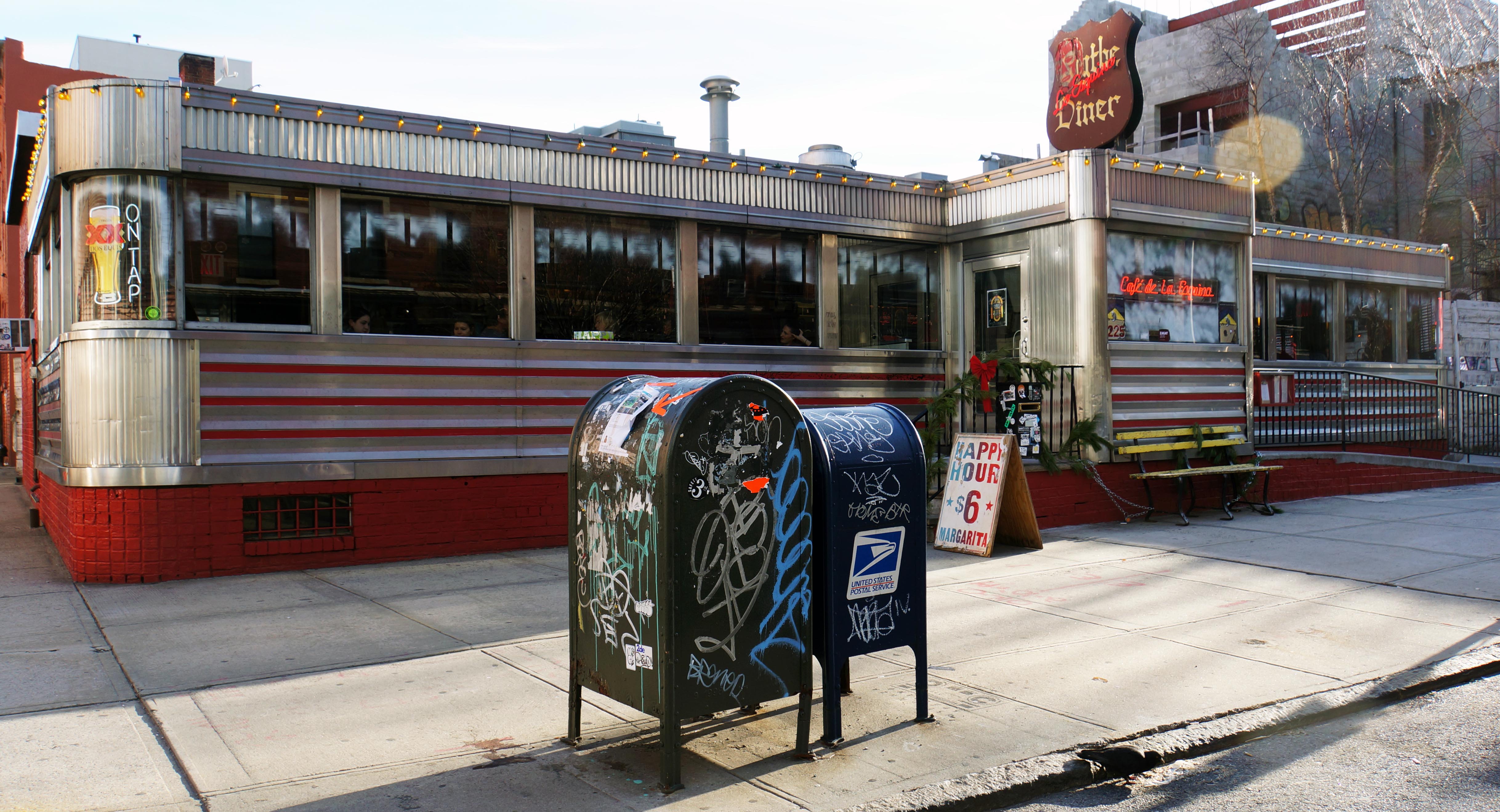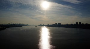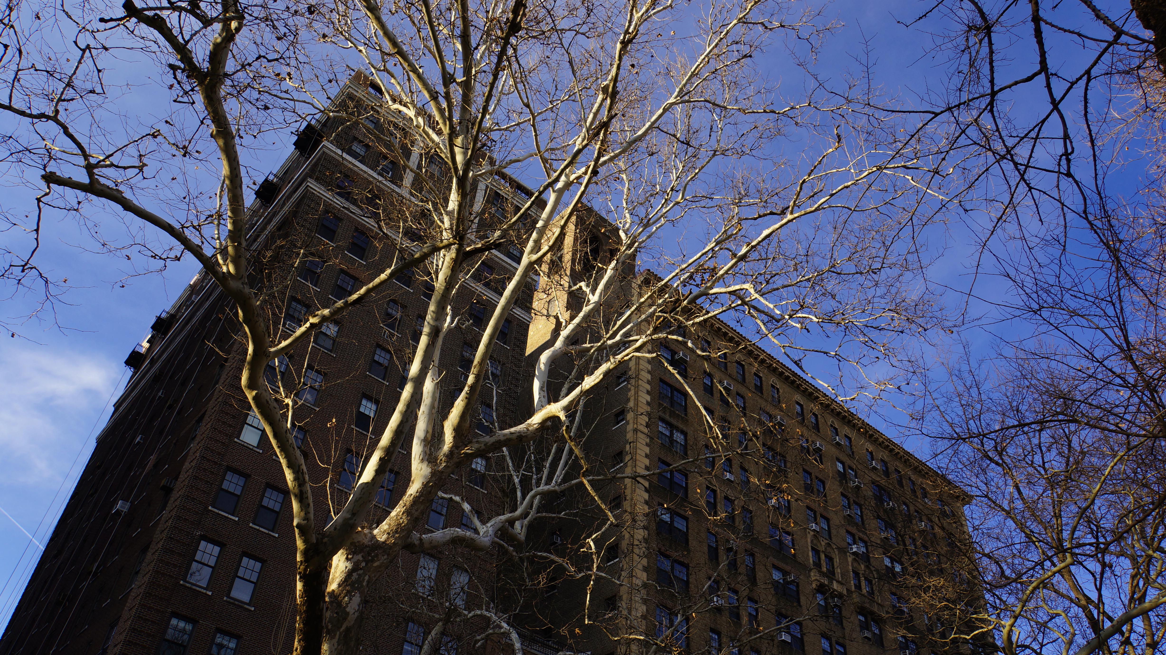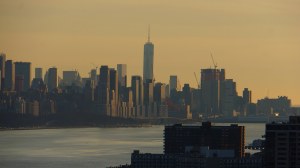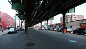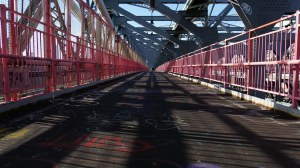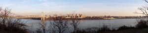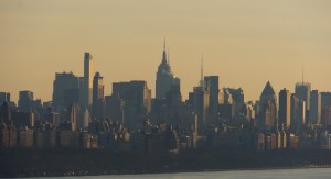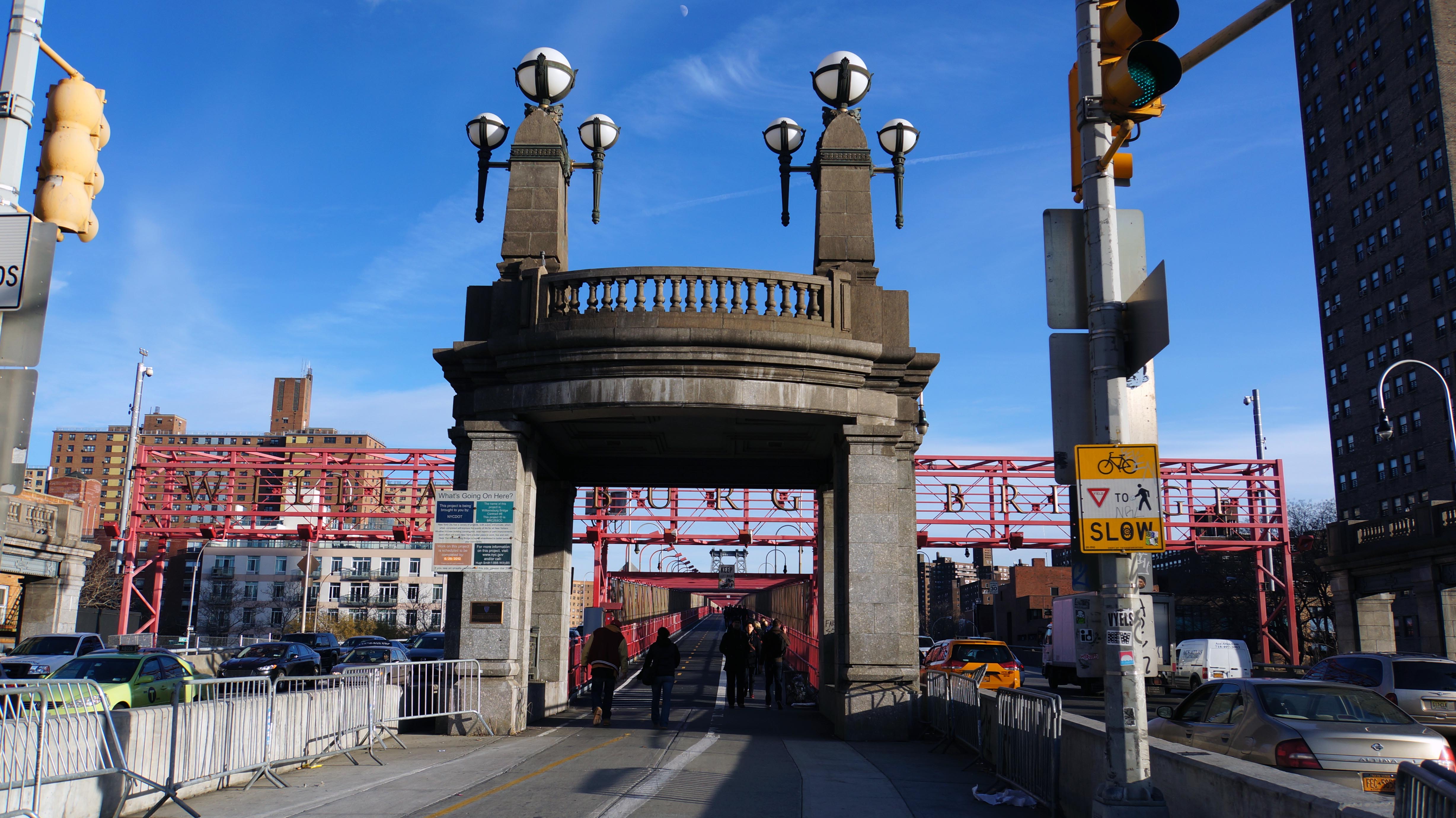 notre autre copain, le corinthien, l’immeuble en forme de pièces de monnaie empilées, depuis le williamsburg bridge.