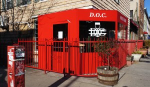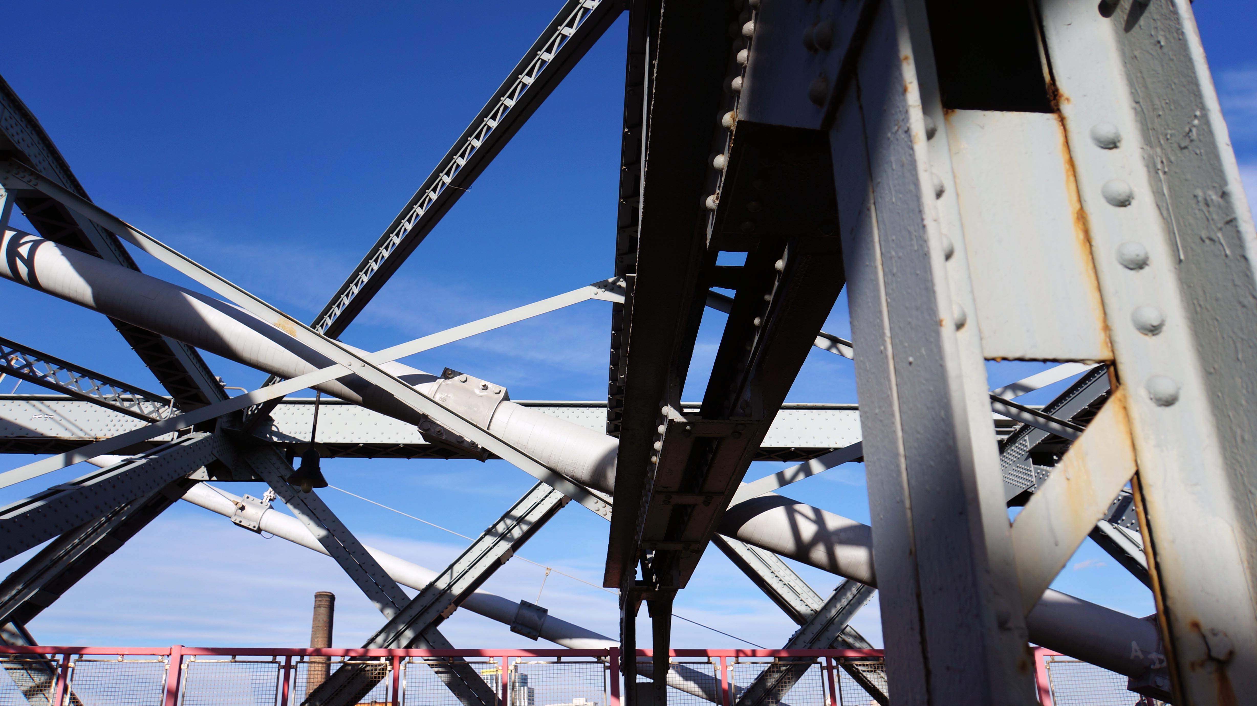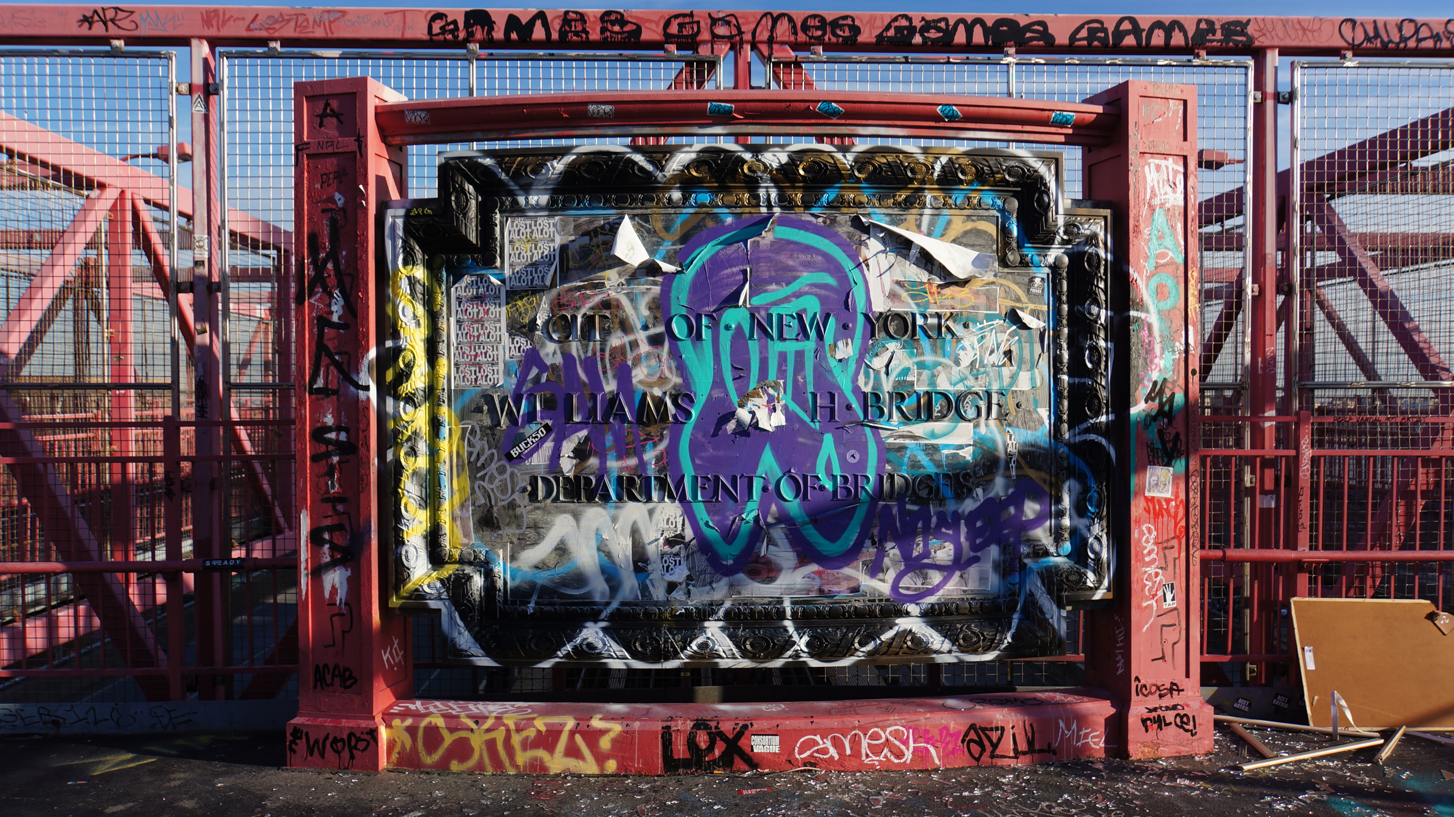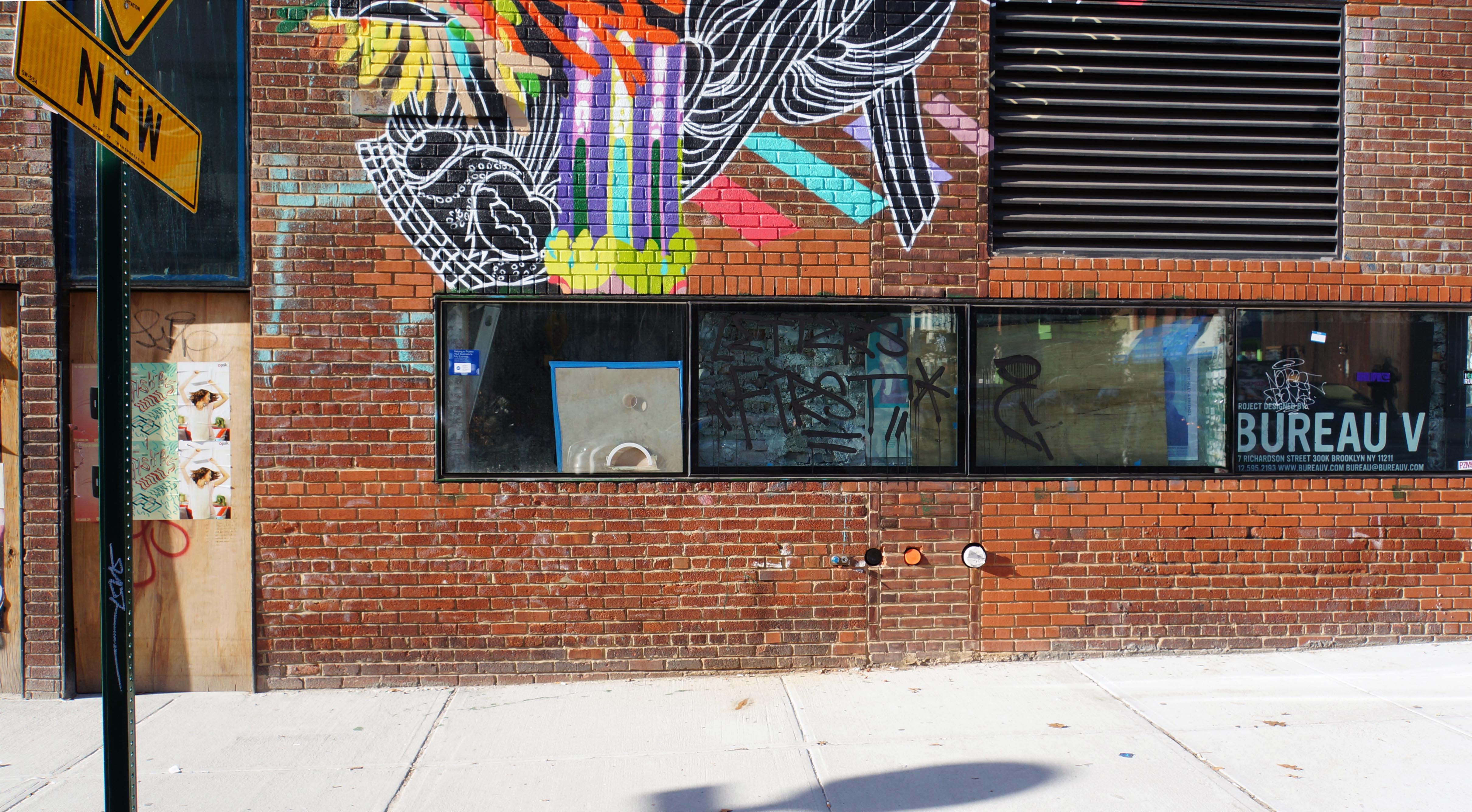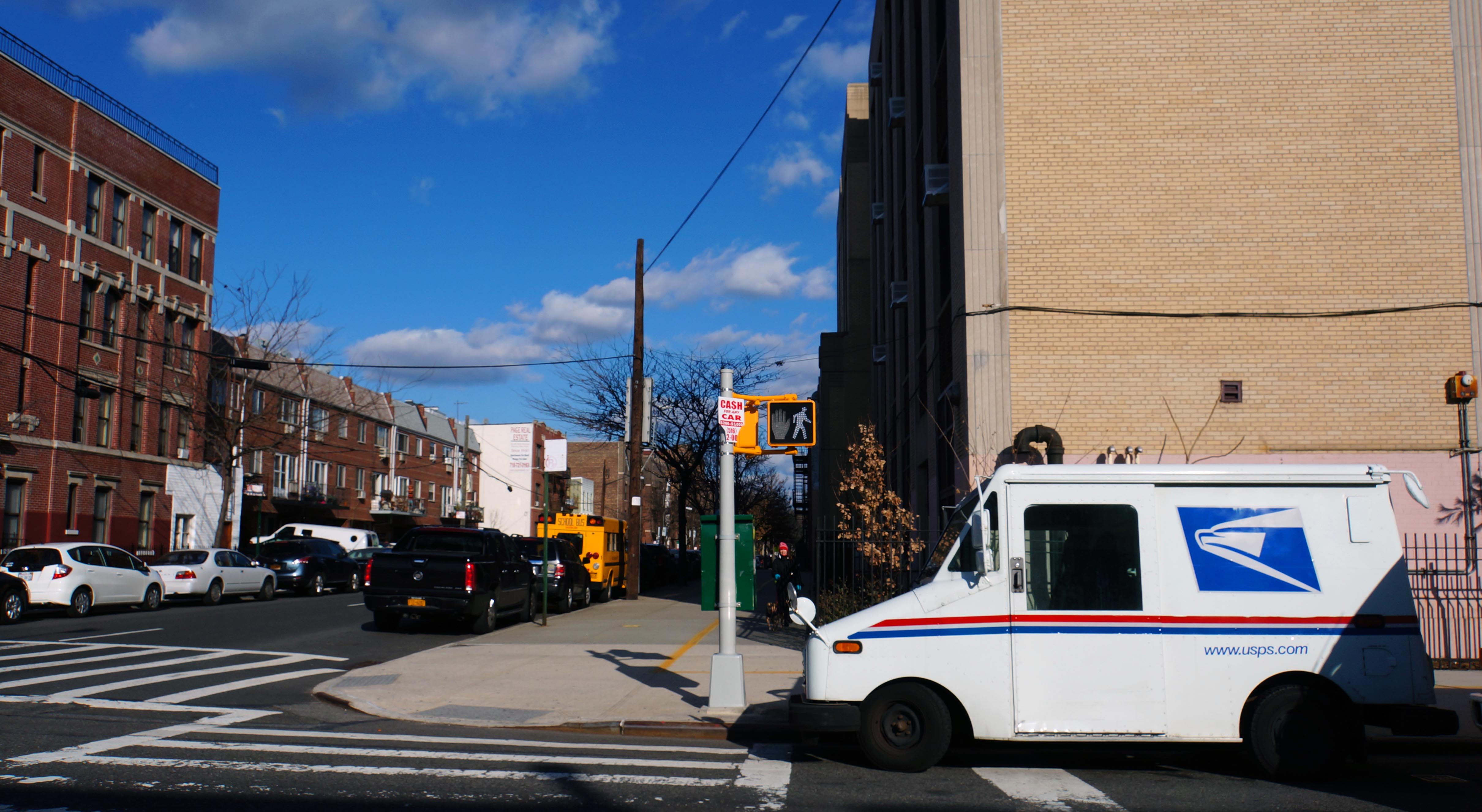notre autre copain, le corinthien, l’immeuble en forme de pièces de monnaie empilées, depuis le williamsburg bridge.