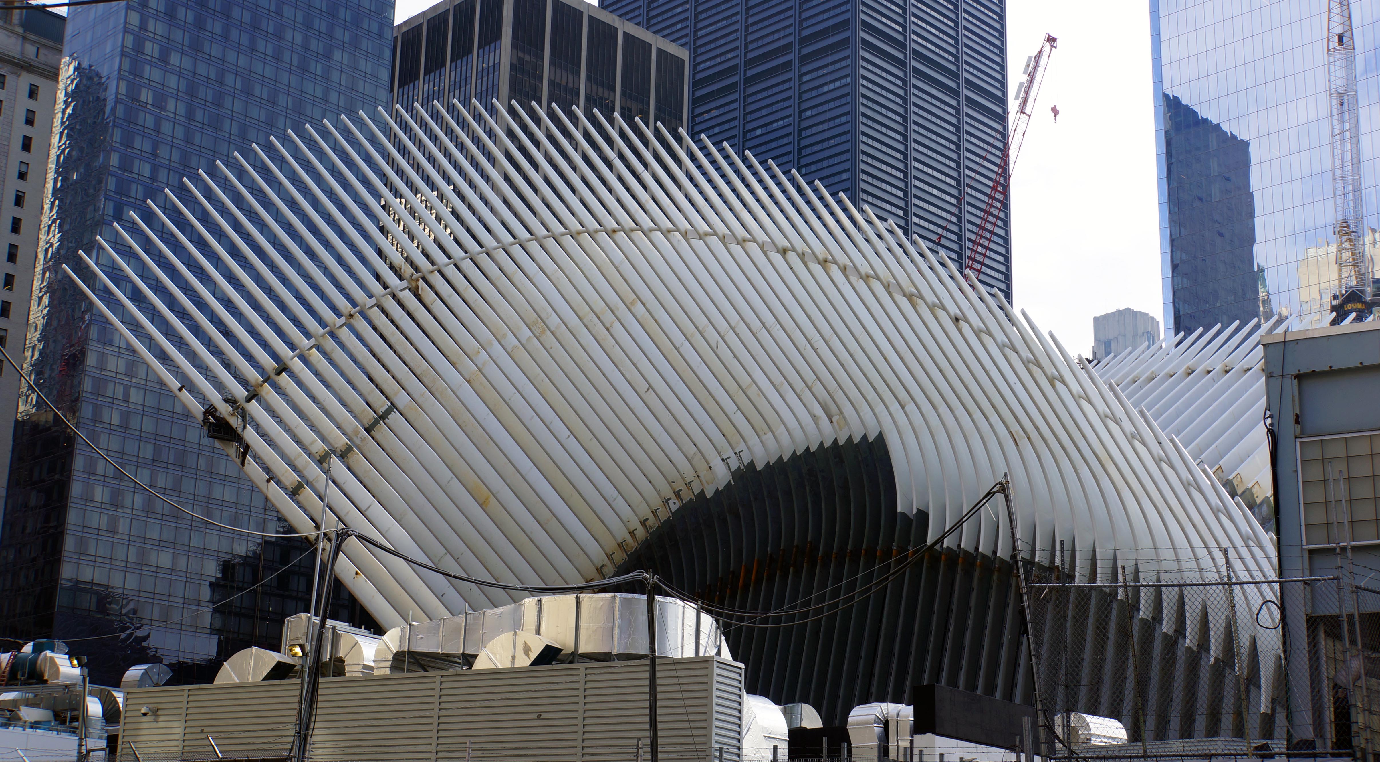 ground zero. la future station de métro, sorte de monstre à l’épine dorsale à la fois extrêmement agressive et très sensuelle qui contraste avec la géométrie des tours environnantes.