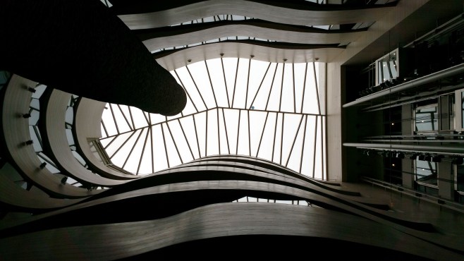 spectaculaire mais pas aussi beau que l’extérieur, l’intérieur du musée est un mélange très réussi de matériaux.
