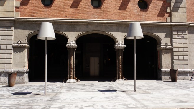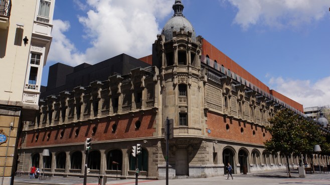 l’une des entrées de l’azkuna zentroa, au style qui donne déjà une idée de l’intérieur. et de l’architecte qui y est intervenu…