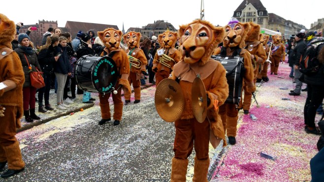 au final, on n’a vu qu’une petite partie du carnaval mais c’était déjà très cool. on a loupé l’exposition des lanternes sur la place de la cathédrale, les schnitzelbangg, ces vers chantés et accompagnés de dessins ironiques et satiriques de l’année écoulée, et le concert des gugge (ces groupes typiques).