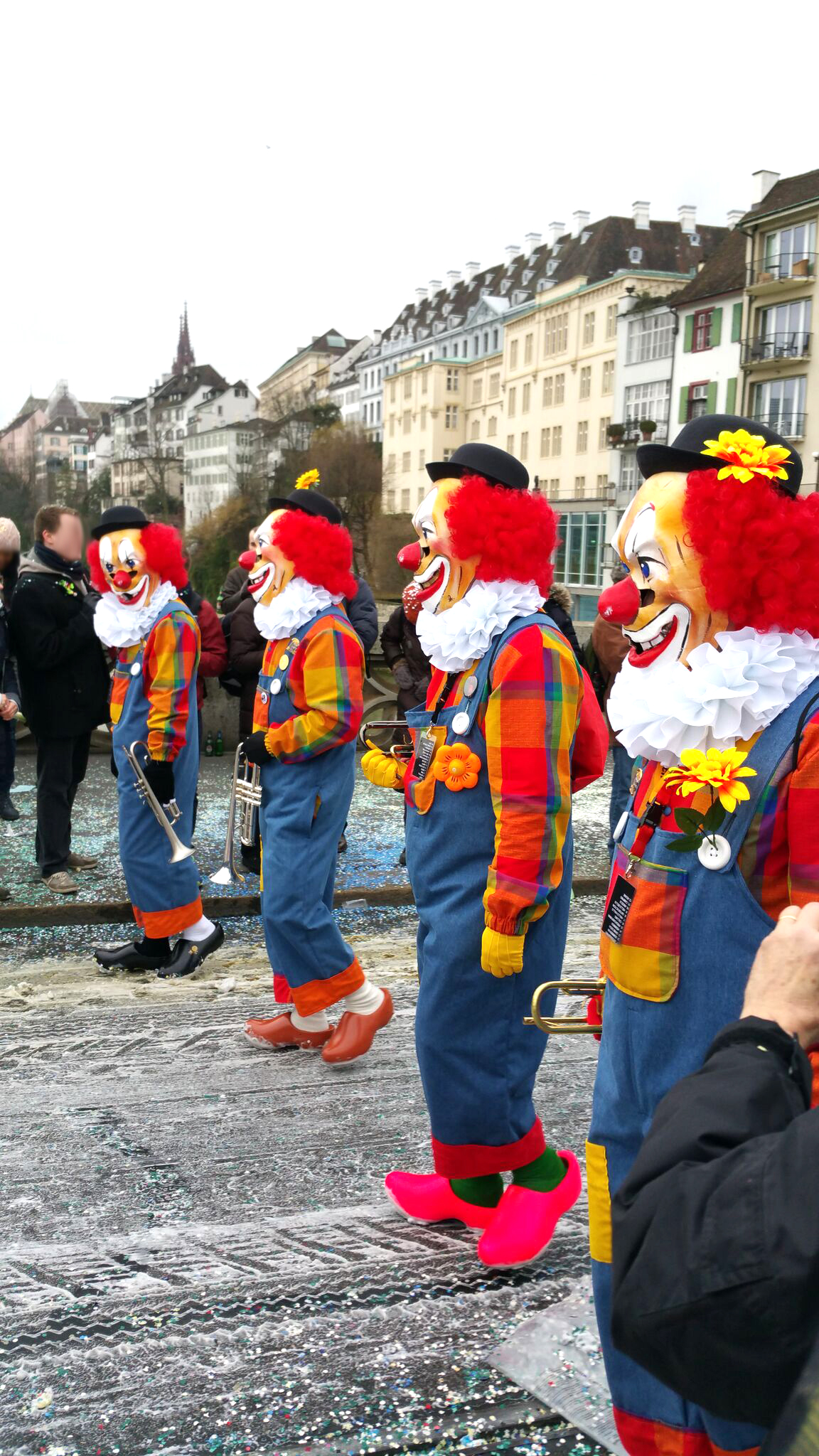 de la musique à gogo, de la traditionnelle soupe de farine bâloise à 6h du matin, des cortèges en veux-tu en voilà, des confetti par milliers de kilos, une ambiance bon enfant, bref, une expérience (fatigante mais) très très sympa et des souvenirs plein la tête. comme d’habitude. en plus, nous étions descendu au merian hotel, et notre chambre (panorama, sèlvôplé) donnait sur le mittlere brücke (on peut difficilement faire plus central). que demander de plus?
