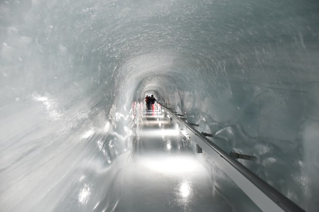 une fois arrivés au jungfraujoch, on aperçoit le point culminant, l’observatoire du sphinx, que l’on atteint en ascenseur…