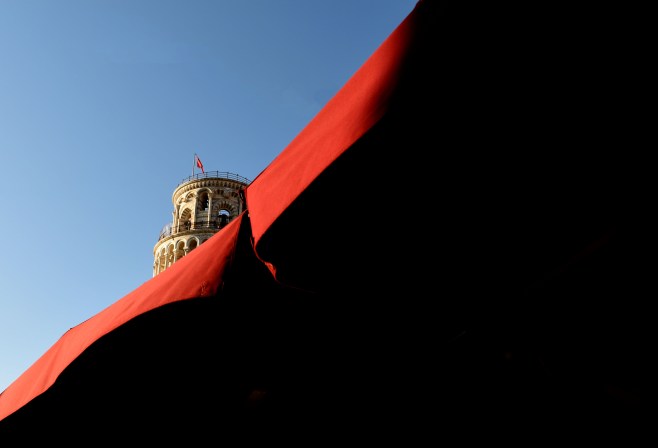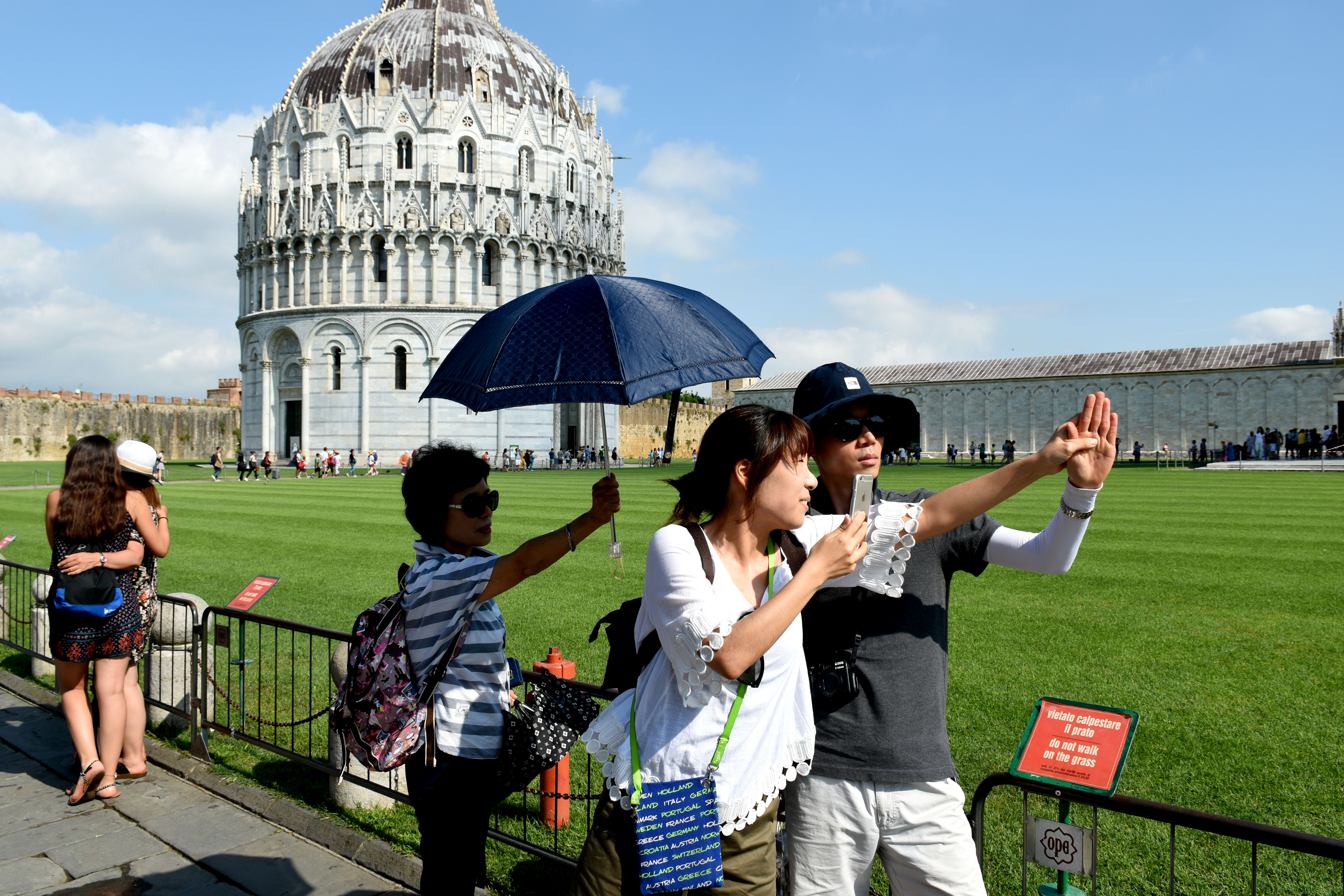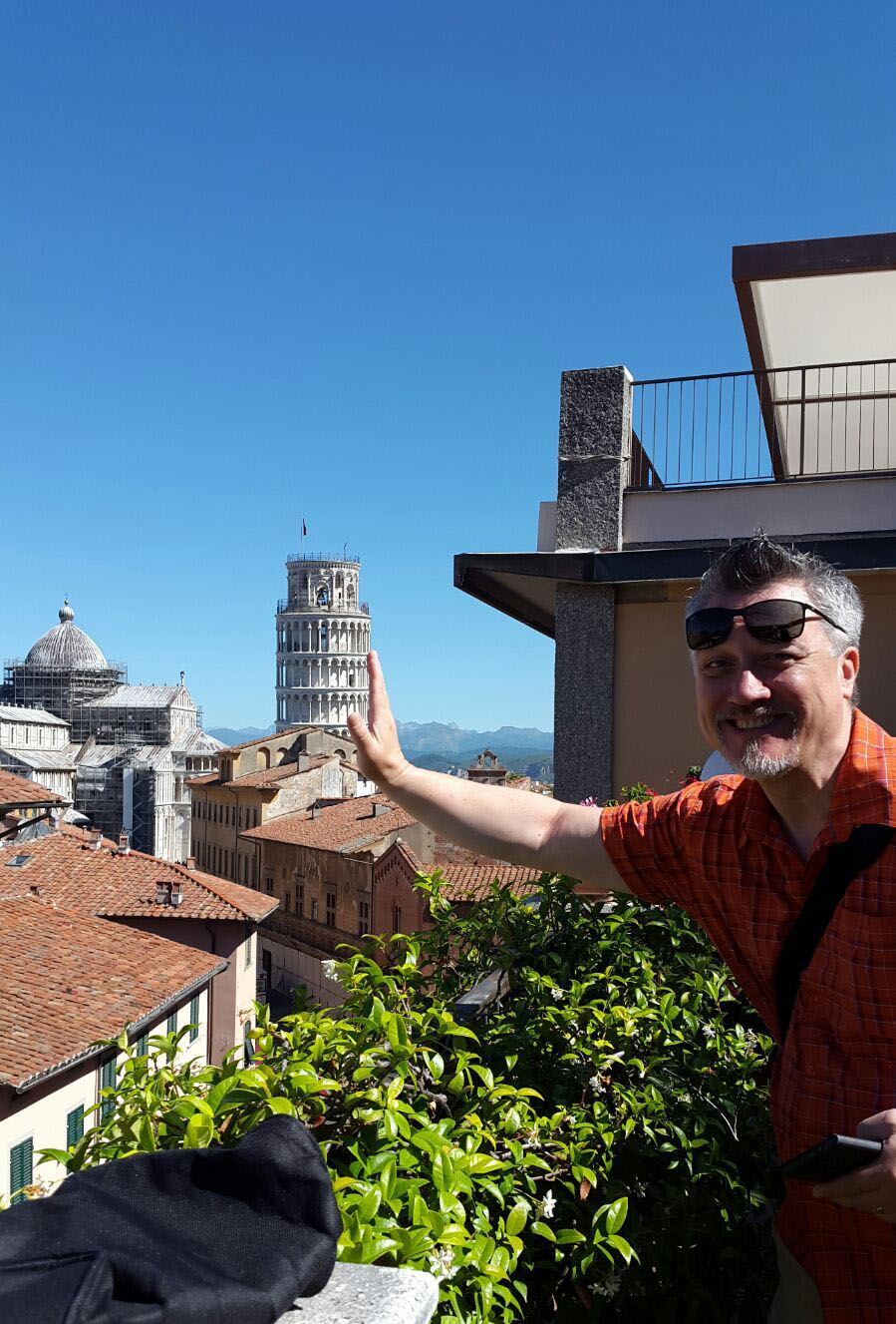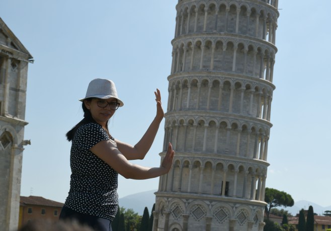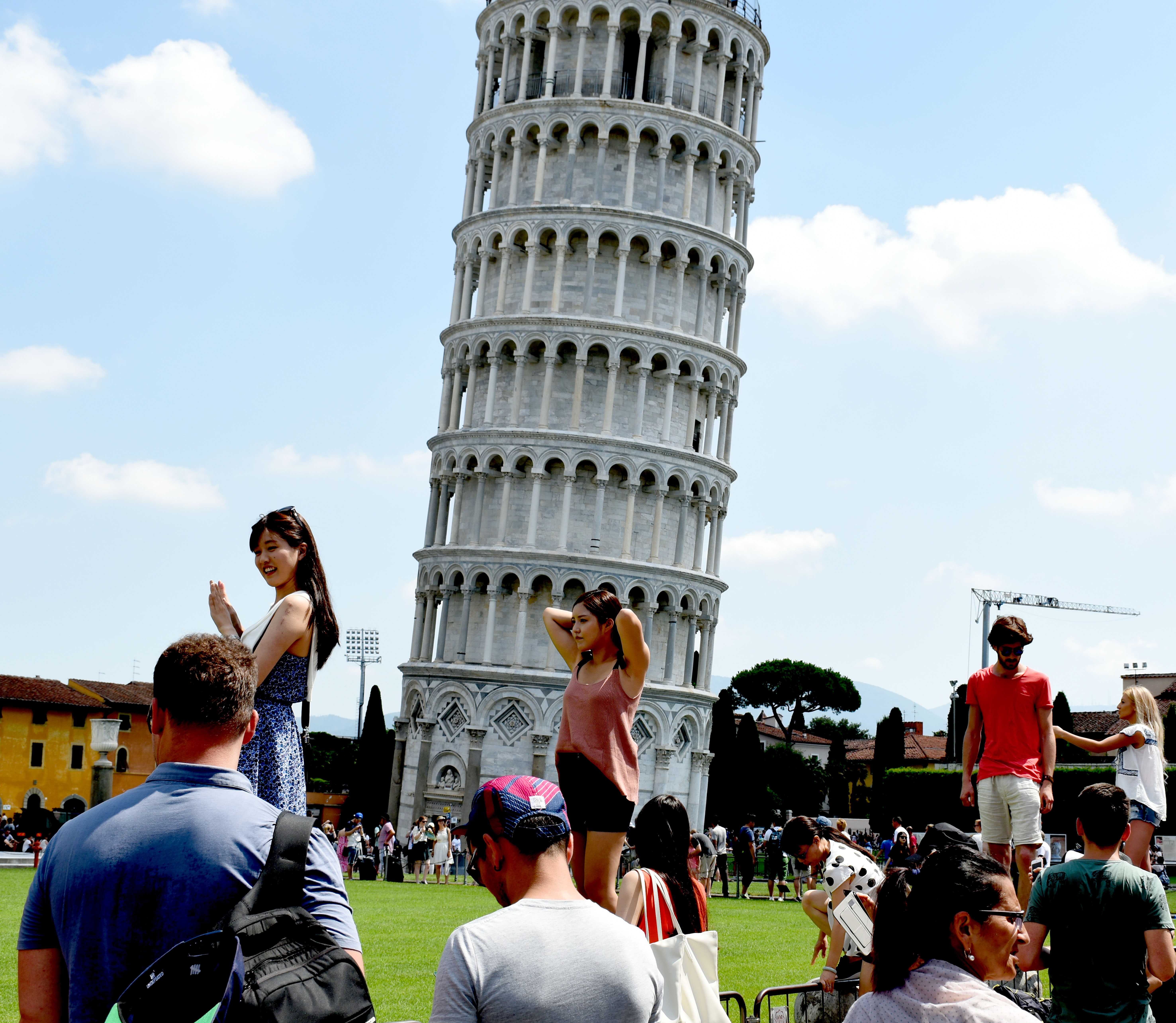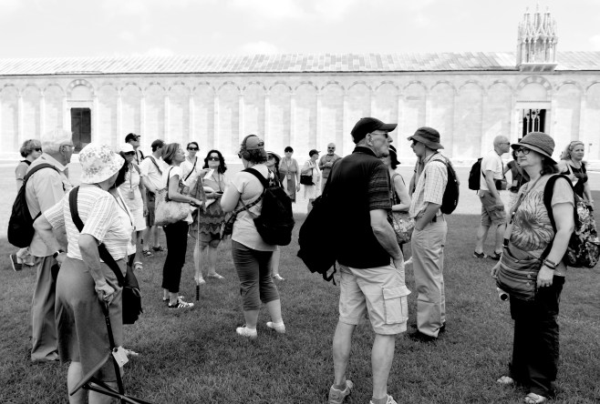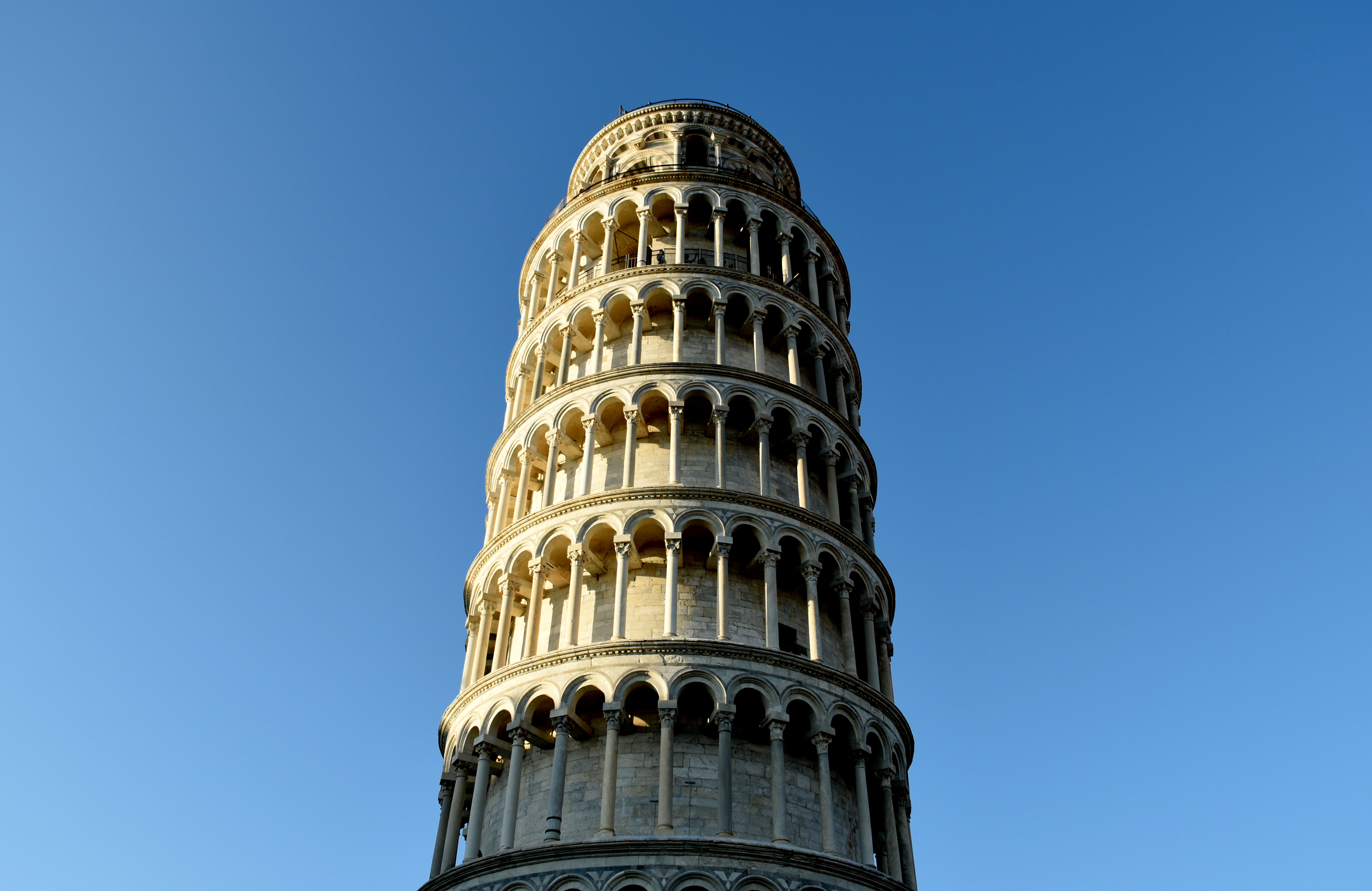 et puis, au détour d’une terrasse de café, il apparaît, dans toute son impressionnante majesté et sa délirante penchitude: le campanile, qui penche sans s’écrouler depuis près de 1000 ans et que les touristes que nous sommes peuvent esclader de l’intérieur sans (trop) craindre pour leur vie. d’ailleurs, après plusieurs décennies d’idées et de travaux infructueux pour redresser l’objet, les autorités pensent à en réinterdire l’accès au public, soupçonnant ledit public d’y être aussi pour quelque chose dans la détérioration de l’édifice…