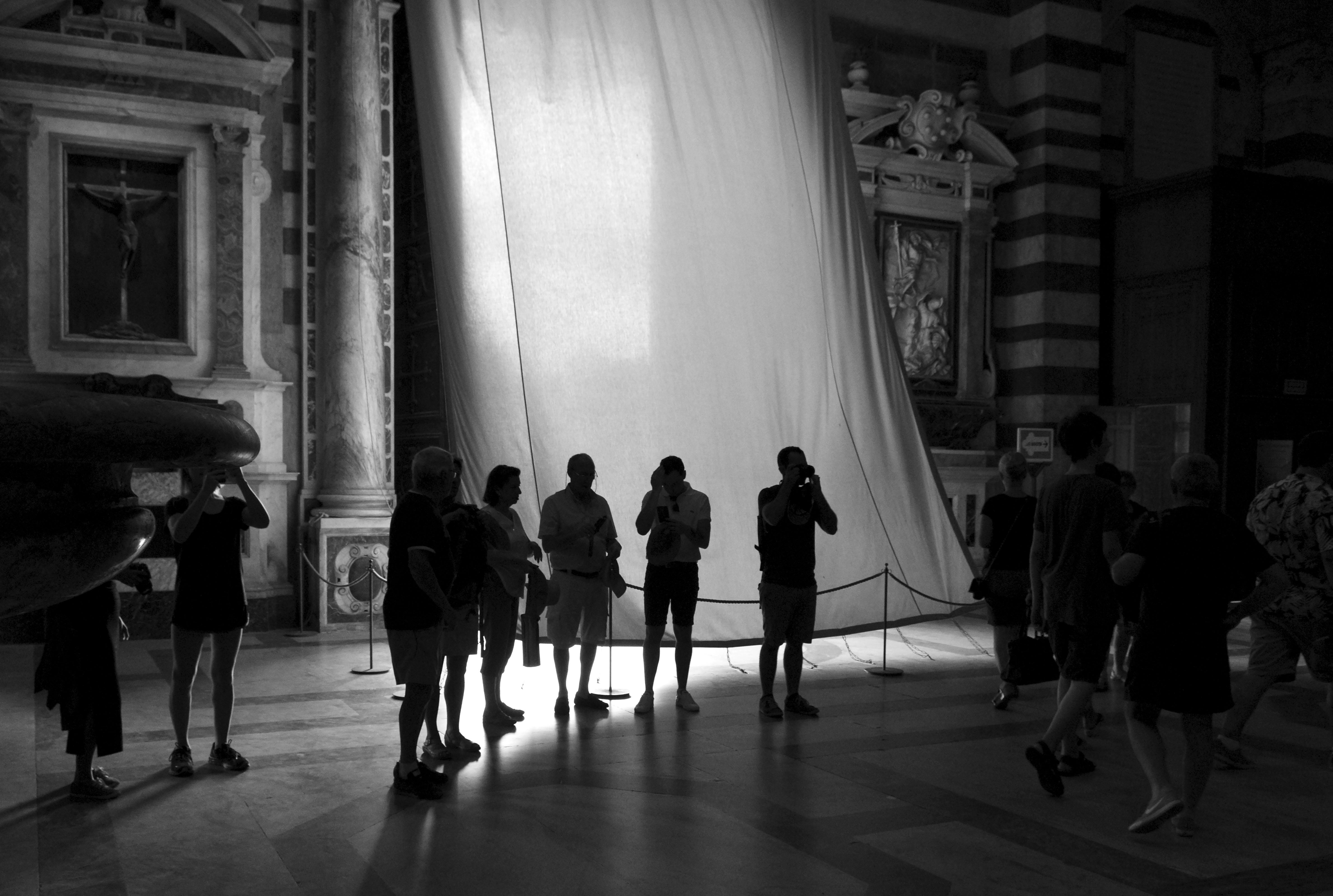 la cathédrale. aux filles légèrement vêtues, on donne des sortes de pélerines pour couvrir ces incitations au péché et sauver la morale…