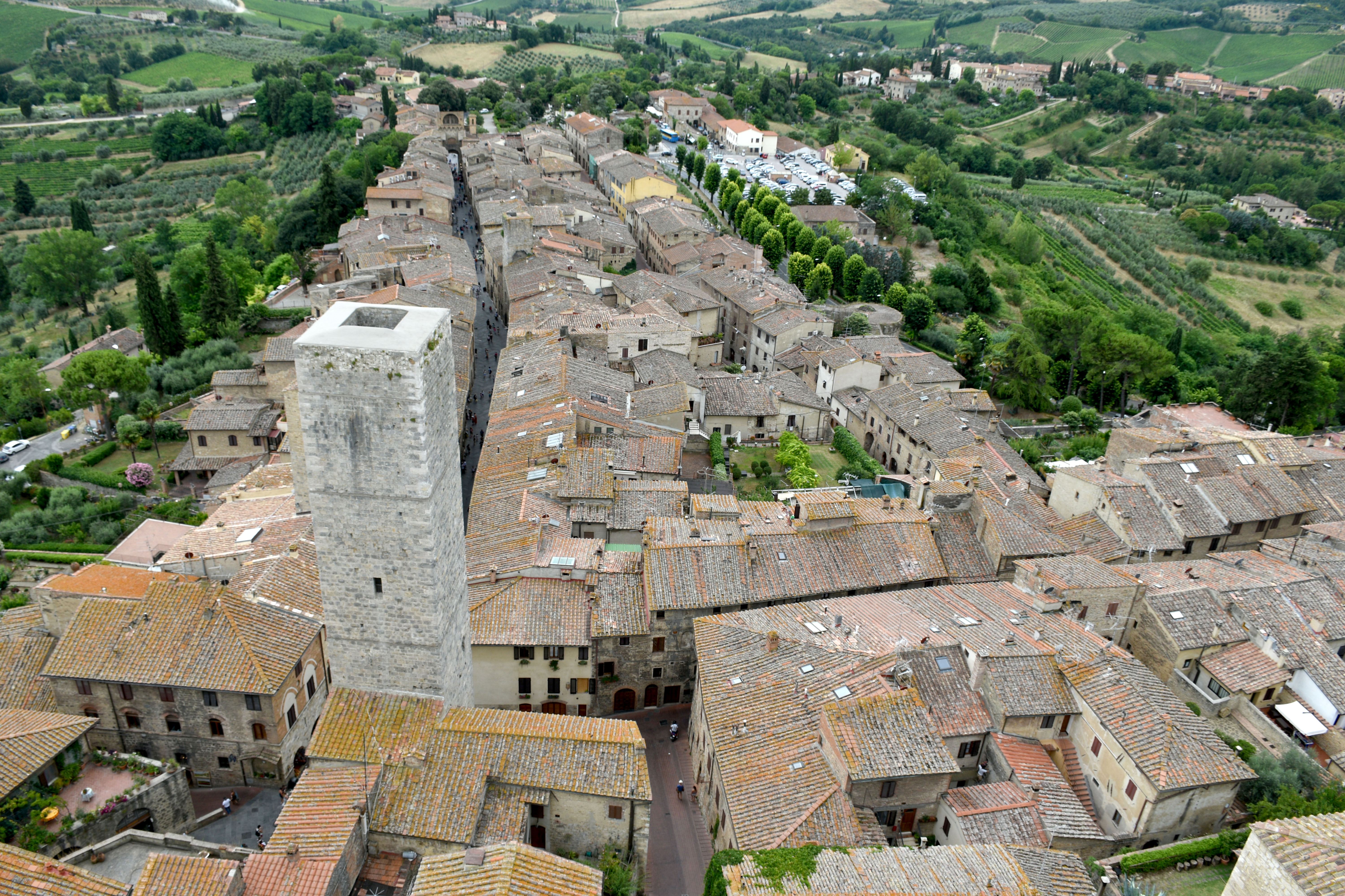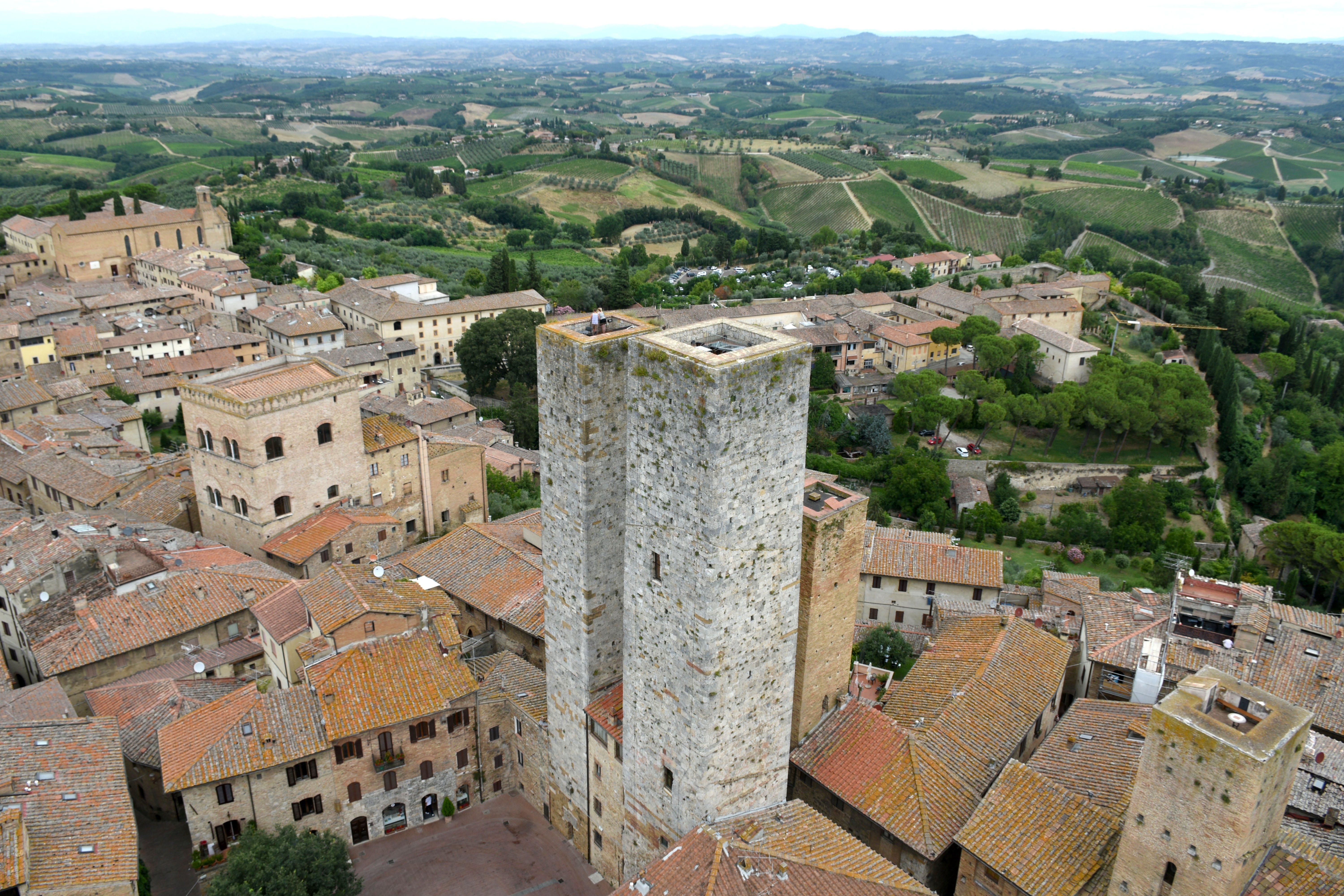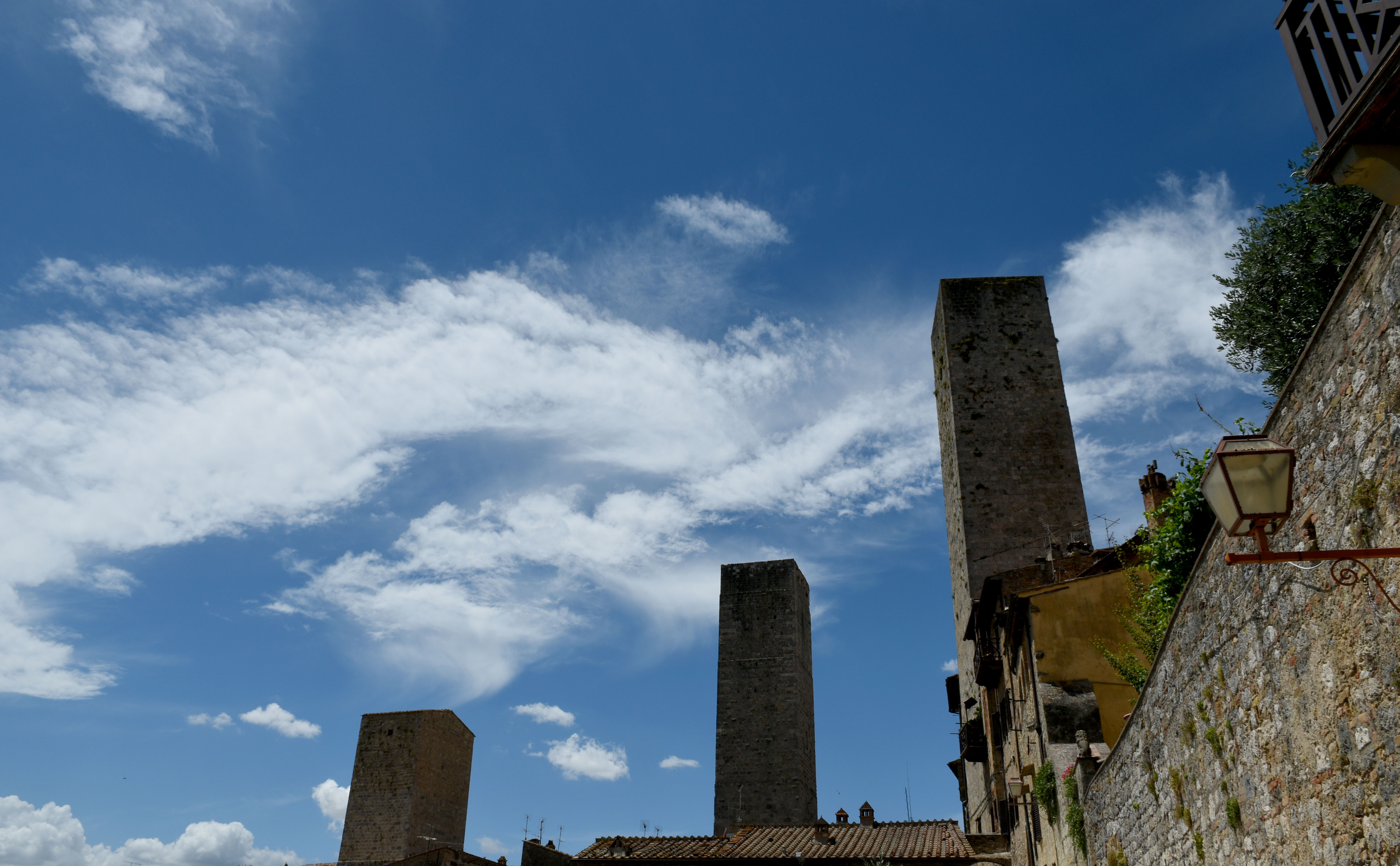 san gimignano et ses maisons-tours, enfin ce qu’il en reste. au moyen-âge, le village en comptait 75, construites par des nobles désireux de montrer leur fortune et leur puissance. il n’en reste plus aujourd’hui que 13…