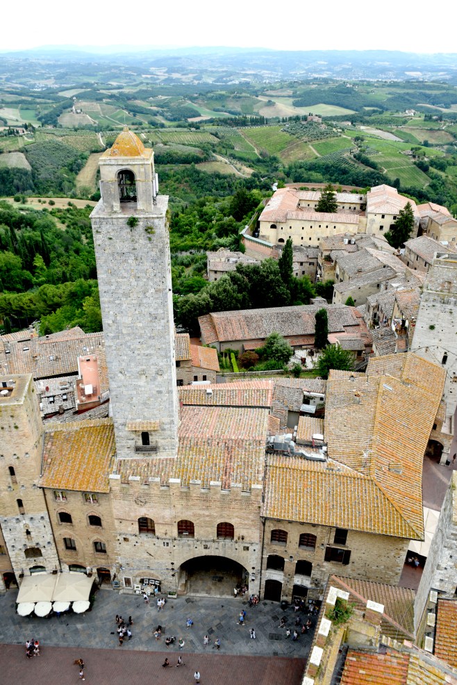 de la torre grossa, la plus haute (54 m), comme son nom l’indique, on a une vue spectaculaire sur le palazzo del podestà et sa torre rognosa (52 m)…