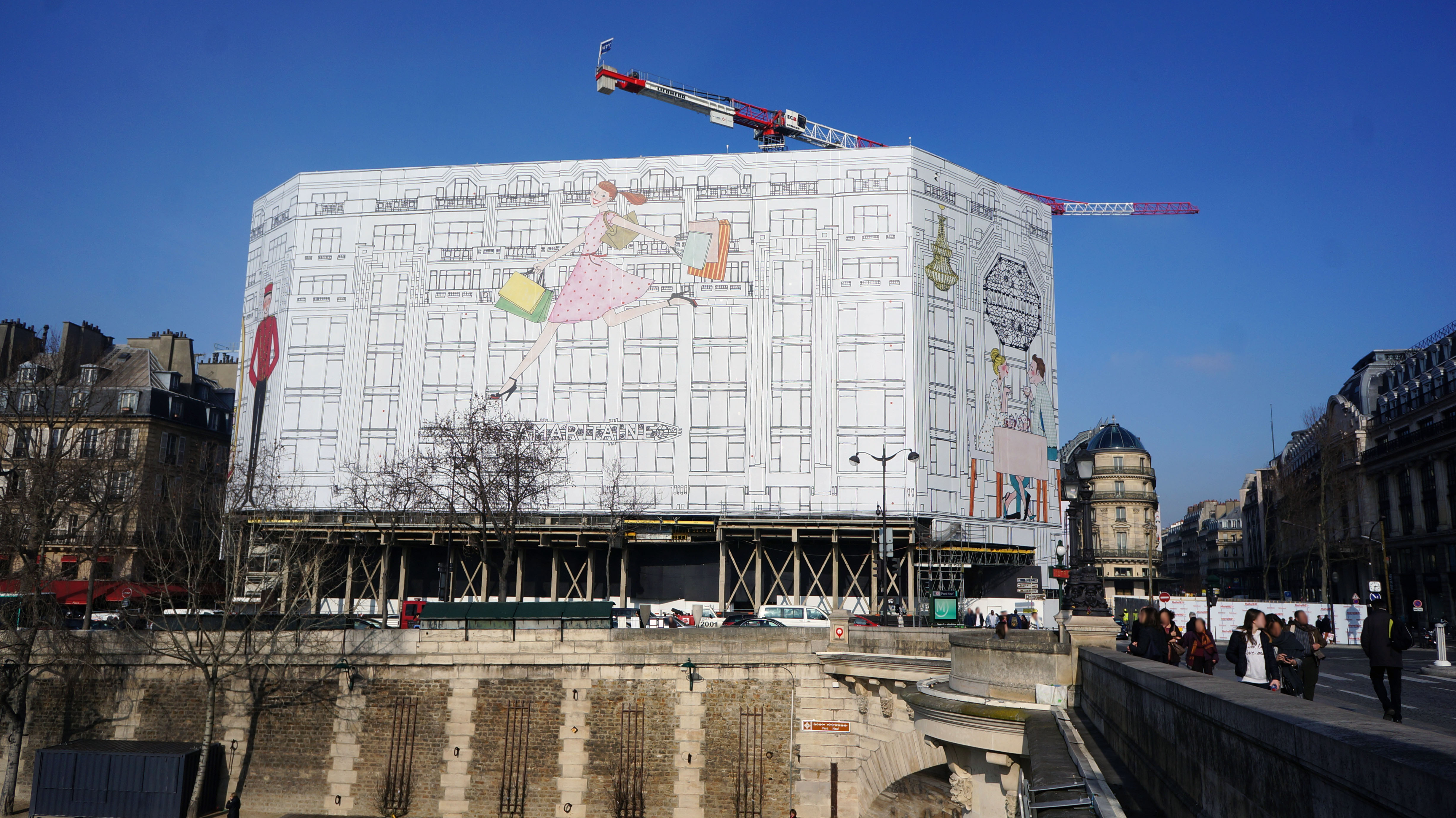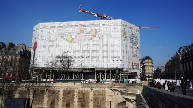 la pointe de l’île de la cité, avec le square du vert-galant, à gauche la samaritaine et à droite la monnaie de paris.