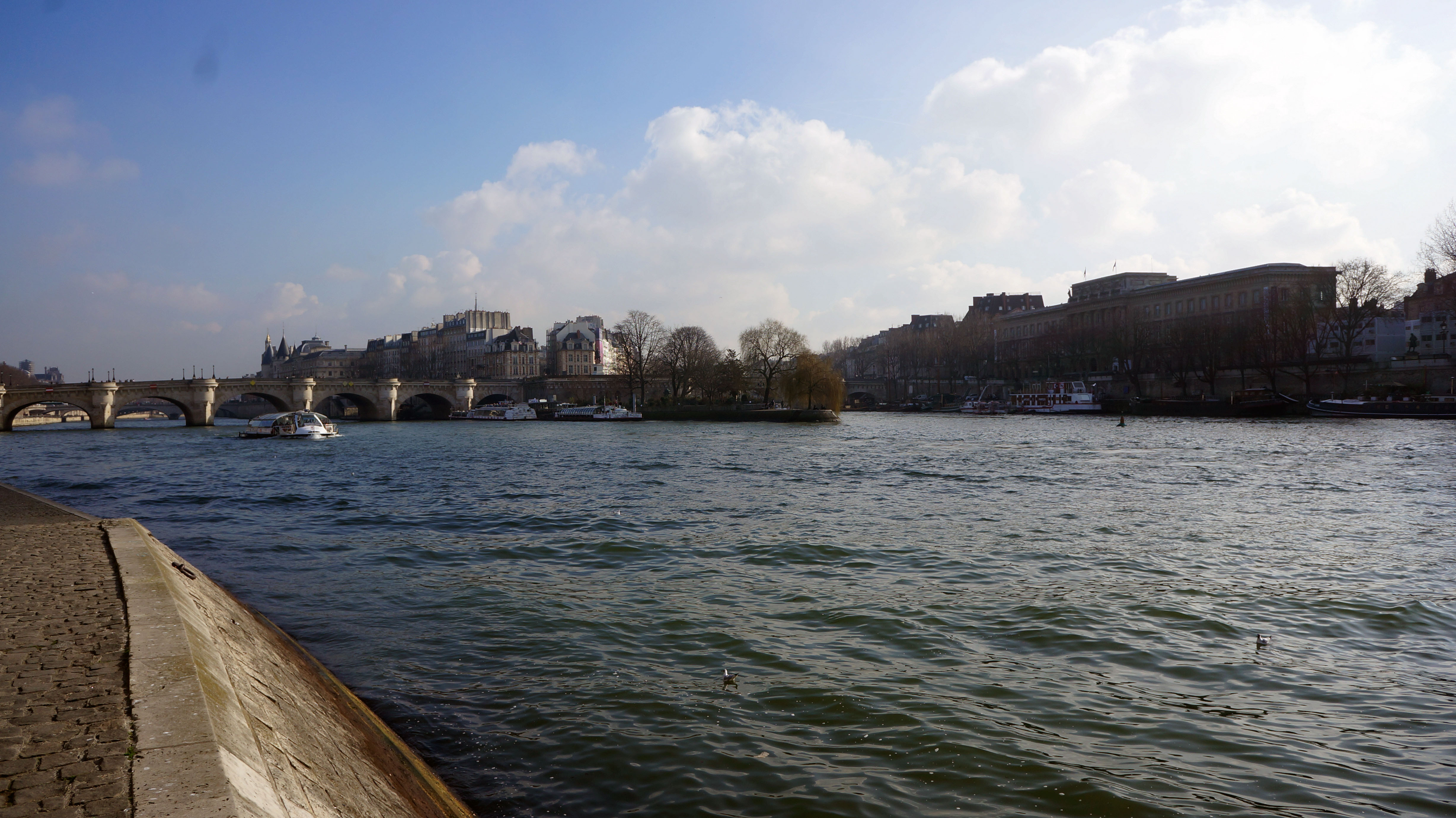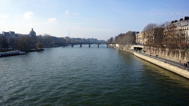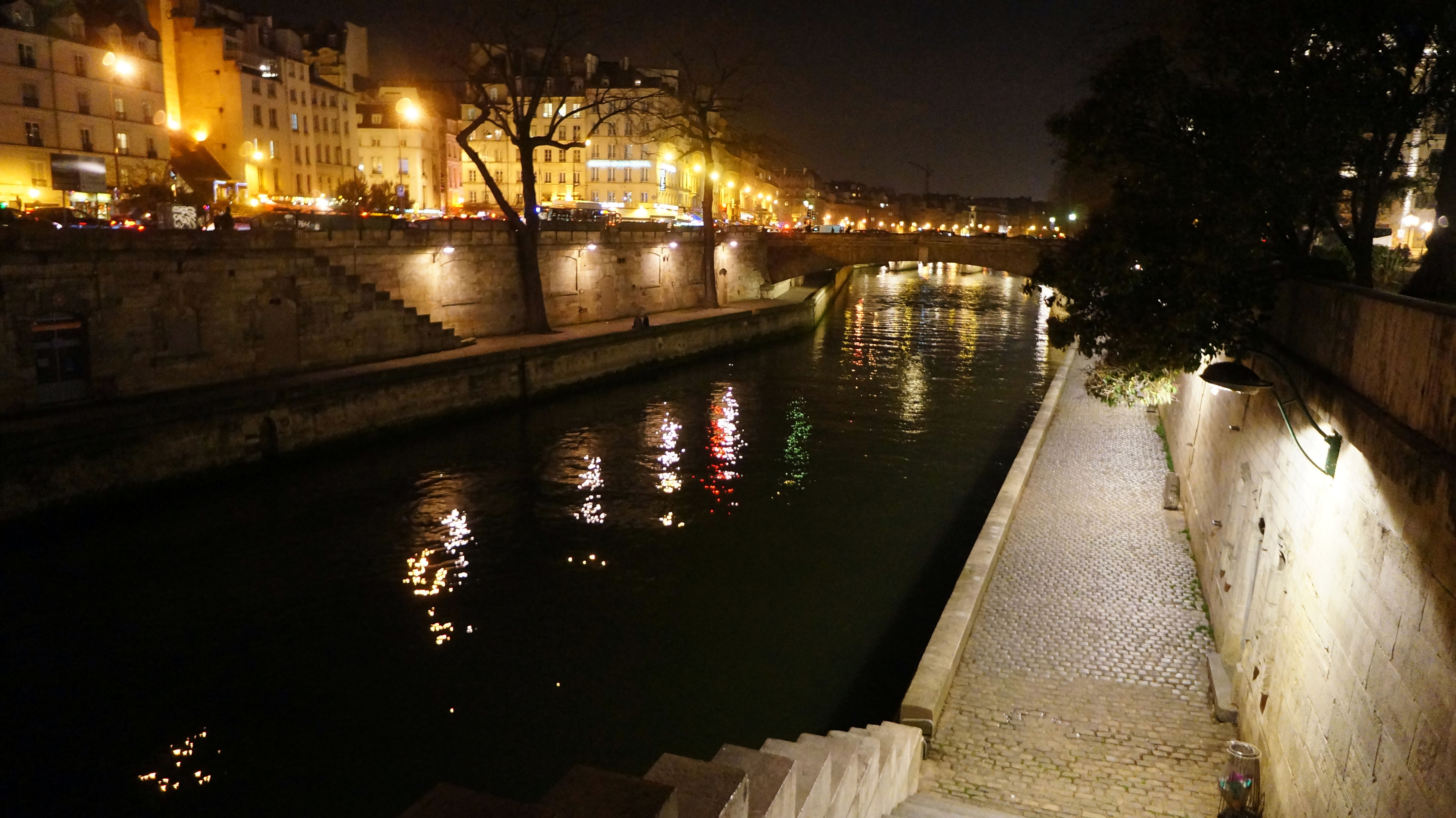 le long de la promenade maurice-carême, depuis le pont au double. au loin, on devine la place saint-michel.