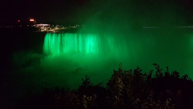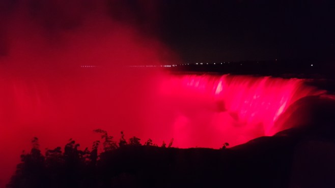 curieusement, le côté américain est bien moins « vivant » que le canadien. je recommande de passer la frontière la nuit venue, l’ambiance chez les canadiens évoque un peu las vegas et la vue sur le horseshoe est bien meilleure (avec, si vous avez de la chance, un son et lumières impressionnant et, en prime, un feu d’artifice).